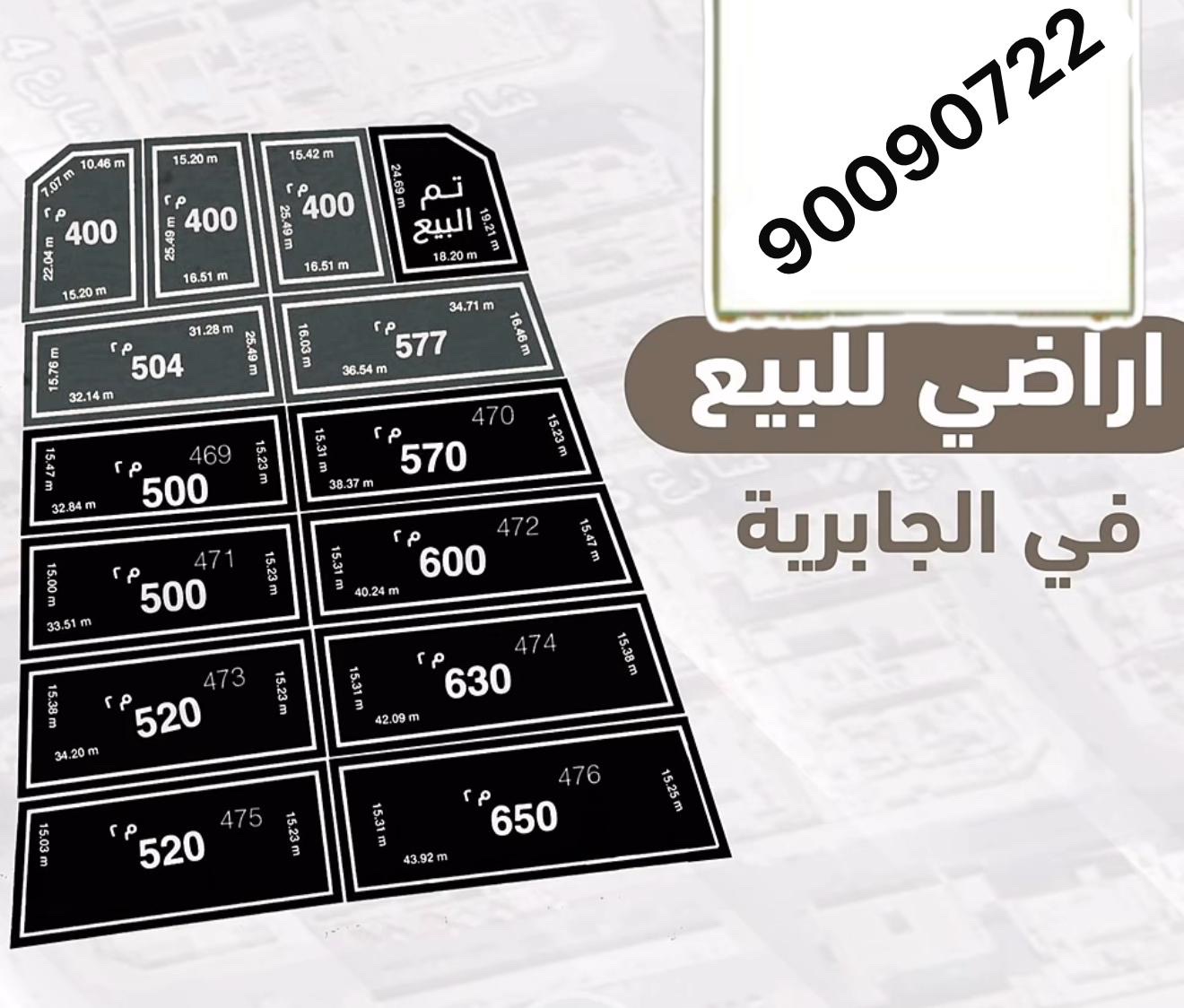 للبيع اراضى فى منطقة الجابرية ، مساحات مختلفه 400 متر مربع ، 600 متر مربع ، للتواصل 90090722