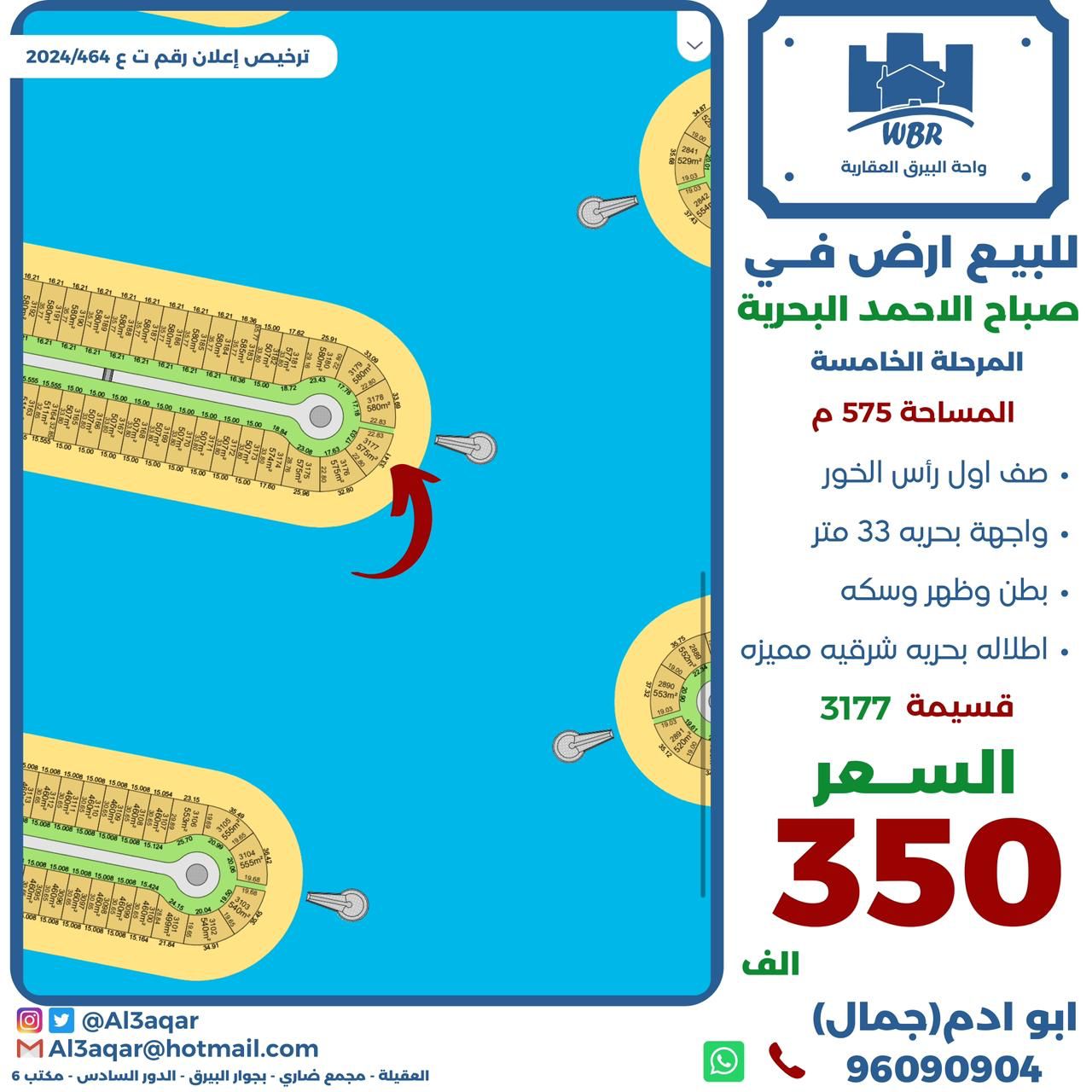 أرض اطلاله بحريه للبيع في صباح الاحمد Share ملخص للبيع ارض في صباح الاحمد البحريه ، المرحله الخامسه ، مساحتها 575 متر مربع ، صف اول على الخور ، واجهه بحريه 33 متر ، تقع على بطن وظهر وسكه ، اطلاله بحريه ، شرقيه مميزه ، السعر 350 ألف د.ك ، قسيمة 3177 التفاصيل حالة: للبيع Page Views الأماكن القريبة من جوجل خصائص ذات صلة للبيع تجربة عنصر للبيع abdulrahman منذ أسبوعين للبيع د.ك111111 شقة تجربة عقار جديد خليل بوست أسرة: 666666 الحمامات: 666666 admin منذ 3 أسابيع Close