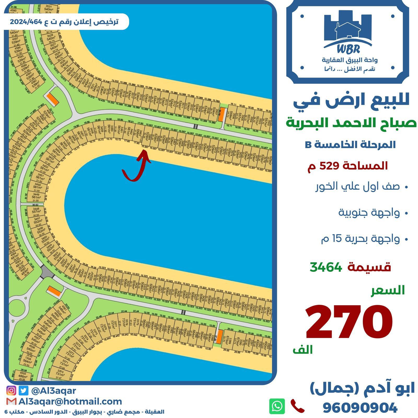 أرض للبيع فى البحرية صف أول Share ملخص للبيع ارض في صباح الاحمد البحرية، المرحلة الخامسة ، المساحة 529 متر مربع ، صف اول على الخور واجهه جنوبية واجهه بحرية 15 متر قسيمة 3464 ، السعر 270 الف د.ك التفاصيل Page Views الأماكن القريبة من جوجل Close