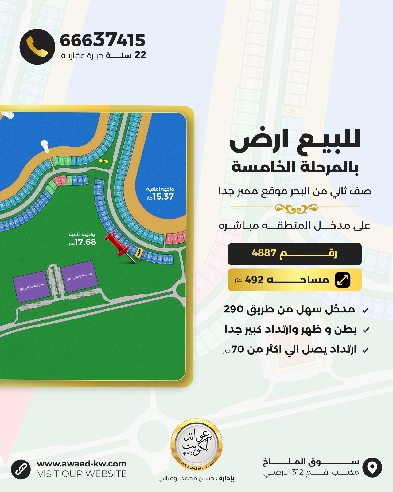 أرض للبيع فى البحرية صف ثانى Share ملخص للبيع ارض بالمرحلة الخامسة ، صف ثاني من البحر موقع مميز جدا ، على مدخل المنطقه مباشره ، رقم 4887 ، تقع على بطن و ظهر وارتداد كبير جدا ، مساحته 492 متر مربع ، ارتداد يصل الي اكثر من 70 متر ، مدخل سهل من طريق 290 ، للتواصل 66637415 التفاصيل Page Views الأماكن القريبة من جوجل Close