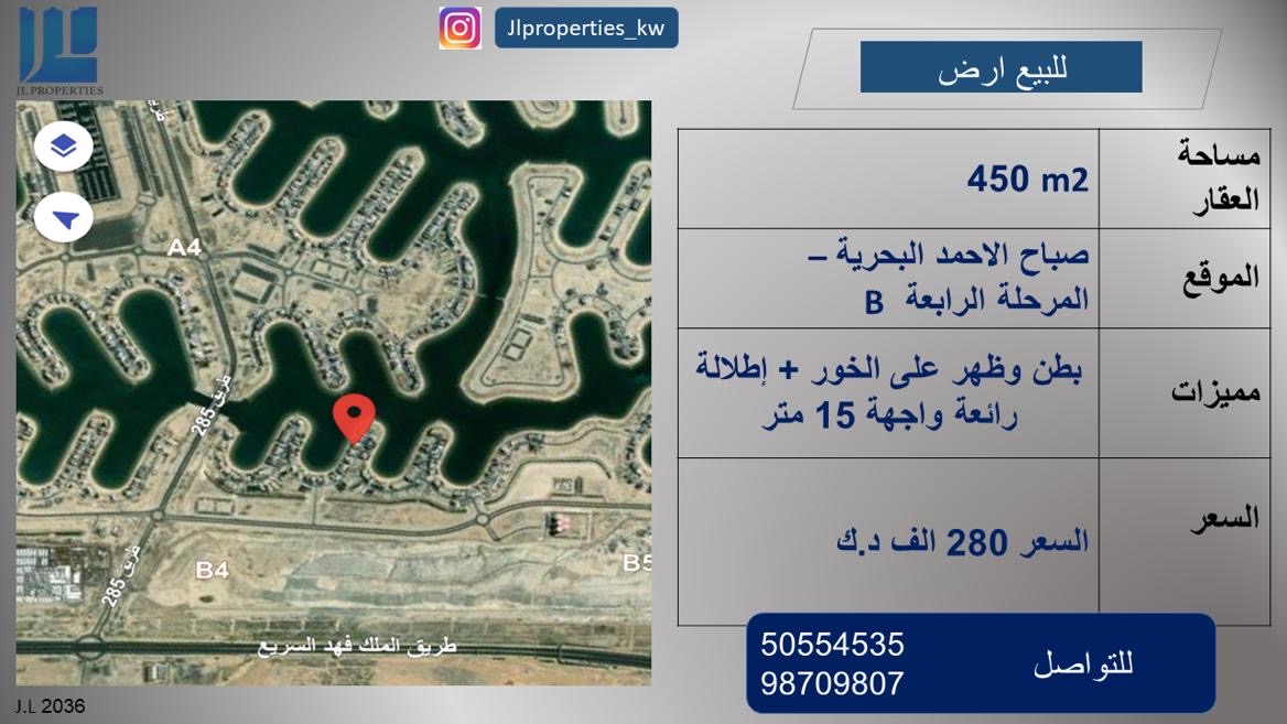 أرض للبيع فى البحريه الرابعه Share ملخص للبيع أرض فضاء فى صباح الأحمد البحرية ، المرحله الرابعة B ، إطلالة رائعة , تقع على بطن وظهر على الخور مباشره ، واجهة 15 متر واجهة شمالية ، مساحتها 450 متر مربع ، السعر 265 ألف دينار . التفاصيل حالة: للبيع Page Views الأماكن القريبة من جوجل خصائص ذات صلة للبيع تجربة عنصر للبيع abdulrahman منذ أسبوعين للبيع د.ك111111 شقة تجربة عقار جديد خليل بوست أسرة: 666666 الحمامات: 666666 admin منذ 3 أسابيع Close