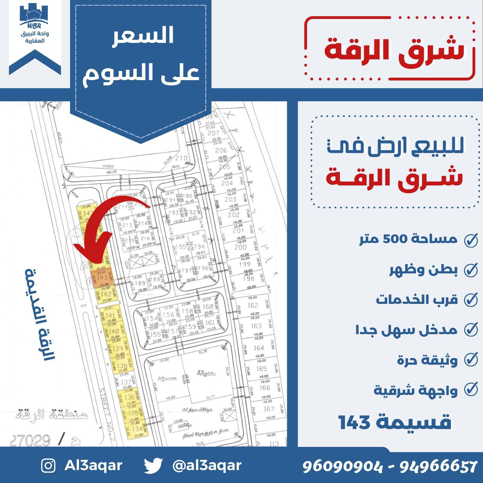 أرض للبيع فى شرق الرقة Share ملخص للبيع ارض في شرق الرقه ، مساحتها 500 متر مربع ، تقع على بطن وظهر ، قرب الخدمات مدخل سهل جدا وثيقة حرة واجهه شرقية ، قسيمة 143 ، السعر على السوم التفاصيل حالة: للبيع Page Views الأماكن القريبة من جوجل خصائص ذات صلة للبيع تجربة عنصر للبيع abdulrahman منذ أسبوعين للبيع د.ك111111 شقة تجربة عقار جديد خليل بوست أسرة: 666666 الحمامات: 666666 admin منذ 4 أسابيع Close