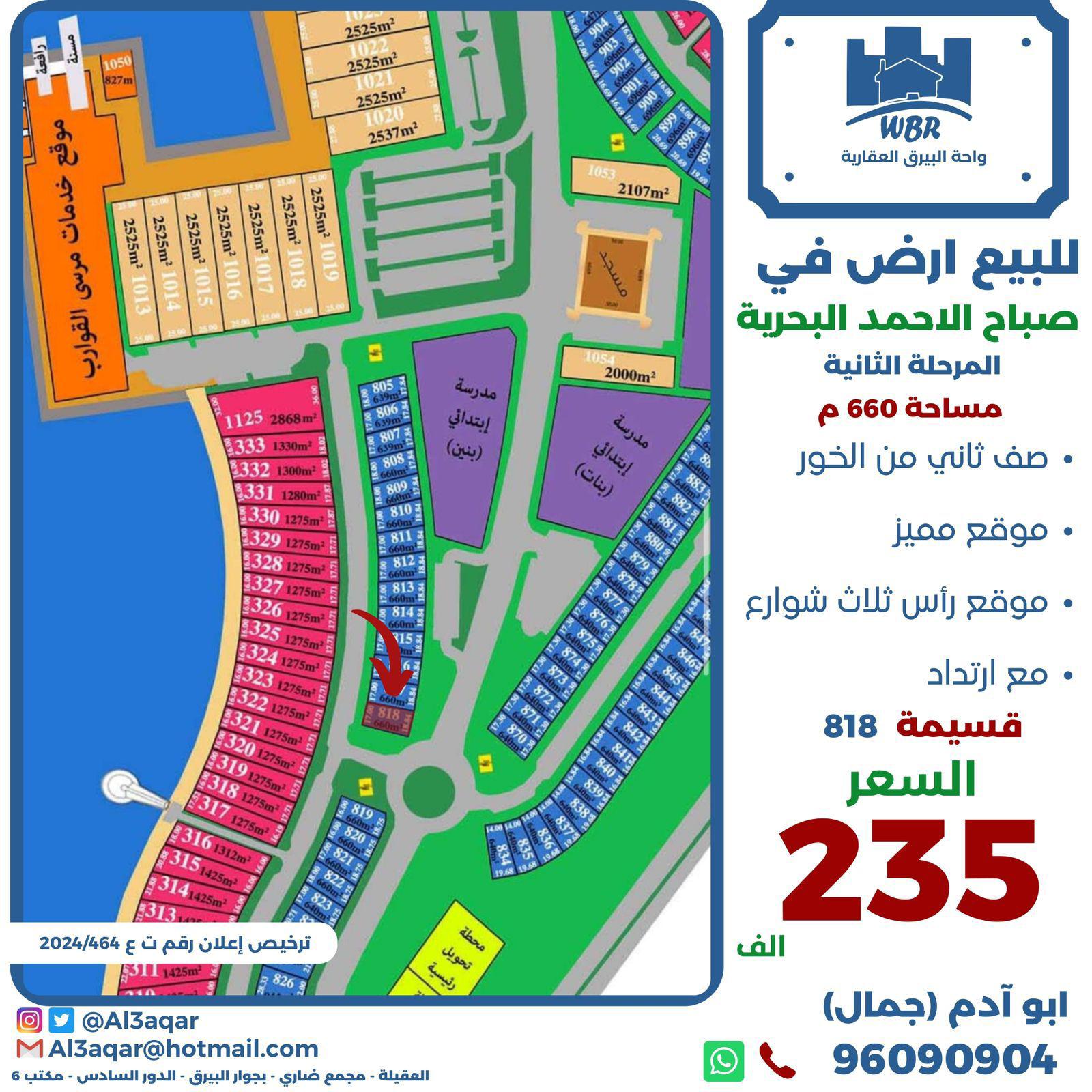 أرض للبيع فى صباح الاحمد البحرية بالمرحلة الثانية Share ملخص للبيع أرض فى صباح الاحمد البحرية بالمرحلة الثانية ، مساحتها 660 متر مربع ، موقع صف ثاني من الخور موقع مميز موقع راس ثلاث شوارع ، قسيمة رقم 818 السعر 235 ألف دينار . التفاصيل حالة: للبيع Page Views الأماكن القريبة من جوجل خصائص ذات صلة للبيع تجربة عنصر للبيع abdulrahman منذ أسبوعين للبيع د.ك111111 شقة تجربة عقار جديد خليل بوست أسرة: 666666 الحمامات: 666666 admin منذ 3 أسابيع Close