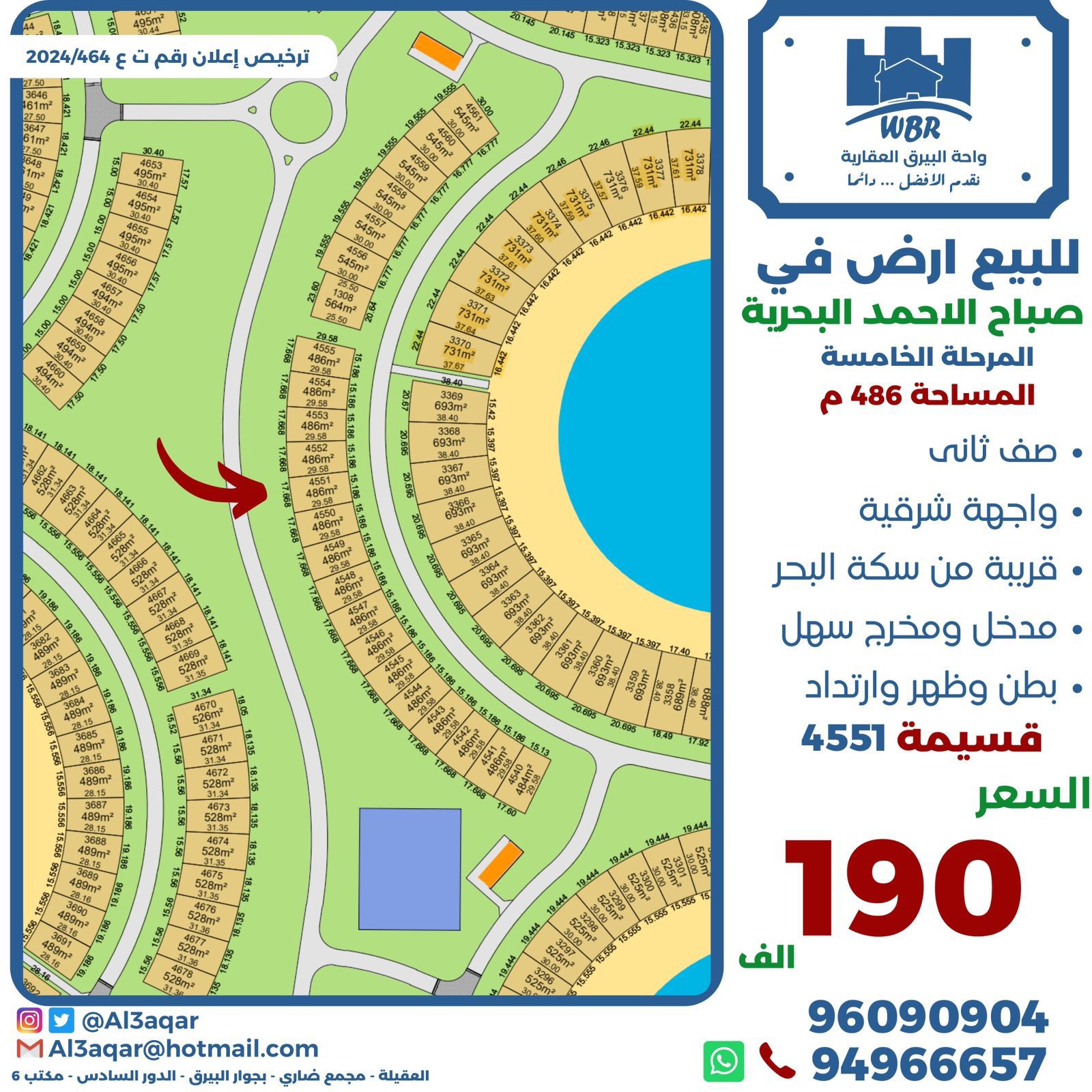 أرض واجهة شرقية للبيع فى صباح الاحمد البحرية Share ملخص للبيع أرض فى صباح الاحمد البحريه المرحله الخامسه صف ثاني ، مساحتها 486 متر مربع واجهه شرقيه قريبه جدا من سكه البحر بطن وظهر وارتداد كبير قسيمه 4551 السعر 190 ألف د.ك . التفاصيل حالة: للبيع Page Views الأماكن القريبة من جوجل خصائص ذات صلة للبيع تجربة عنصر للبيع abdulrahman منذ أسبوعين للبيع د.ك111111 شقة تجربة عقار جديد خليل بوست أسرة: 666666 الحمامات: 666666 admin منذ 3 أسابيع Close