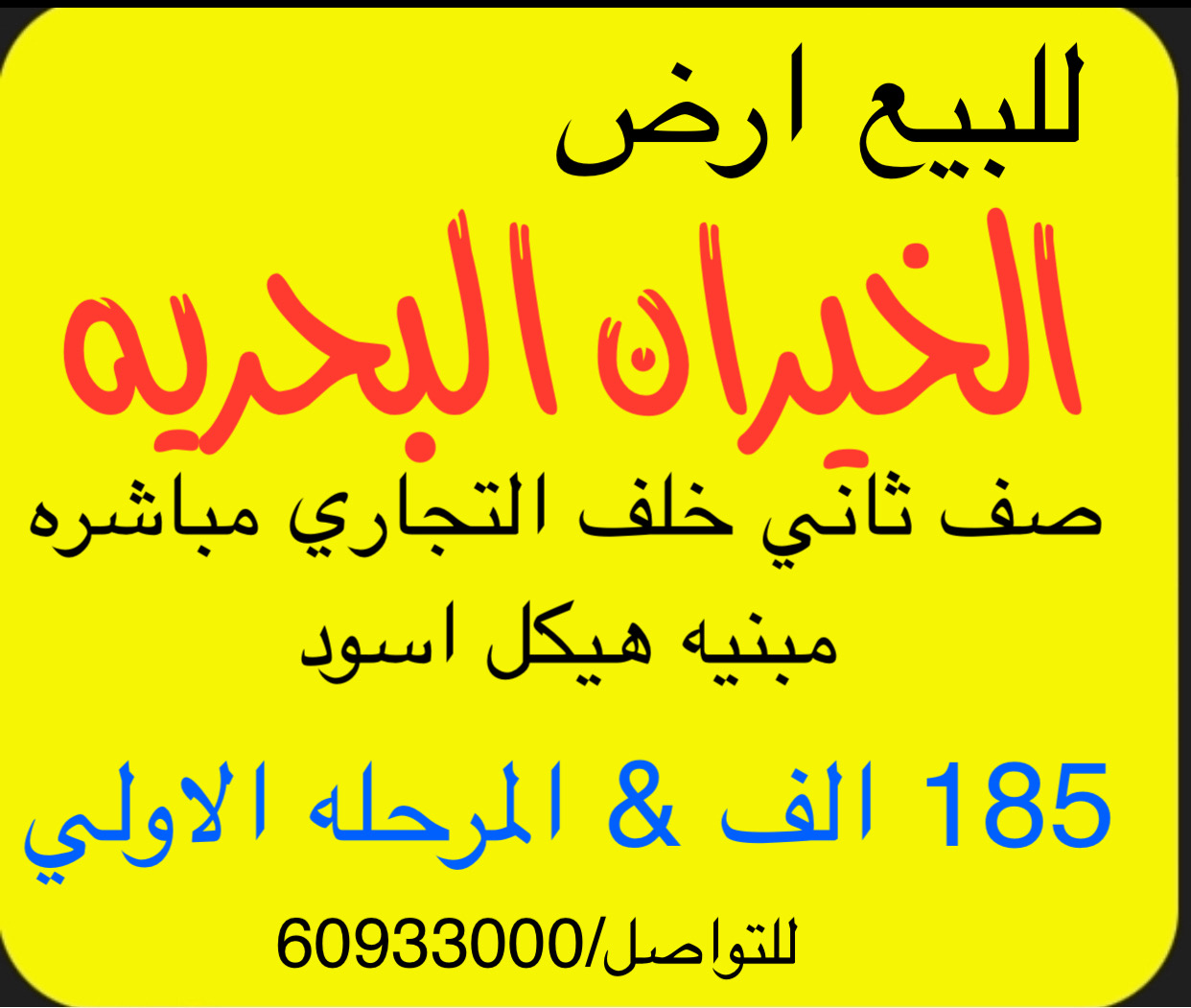 ارض صف ثانى للبيع فى البحرية Share ملخص للبيع ارض صف ثاني ، الخيران البحريه ، طريق 278 ، المرحله الاولي ، خلف التجاري ، مبنيه هيكل إسود ، سعر ممتاز التفاصيل حالة: للبيع Page Views الأماكن القريبة من جوجل خصائص ذات صلة للبيع تجربة عنصر للبيع abdulrahman منذ أسبوعين للبيع د.ك111111 شقة تجربة عقار جديد خليل بوست أسرة: 666666 الحمامات: 666666 admin منذ 4 أسابيع Close