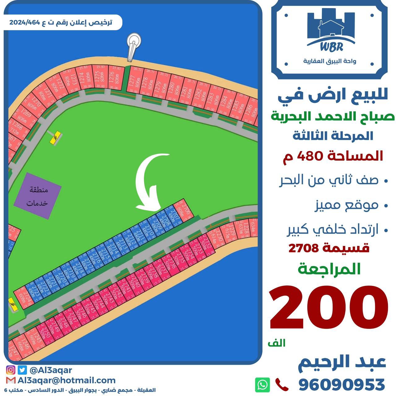 ارض صف ثاني للبيع في البحريه Share ملخص للبيع ارض فى صباح الاحمد البحريه ، المرحله الثالثه ، صف ثاني ، على البحر ، موقع مميز ، ارتداد خلفي كبير ، مساحتها 480 متر مربع ، قسيمه 2708 ، السعر 200 ألف د.ك التفاصيل Page Views الأماكن القريبة من جوجل Close