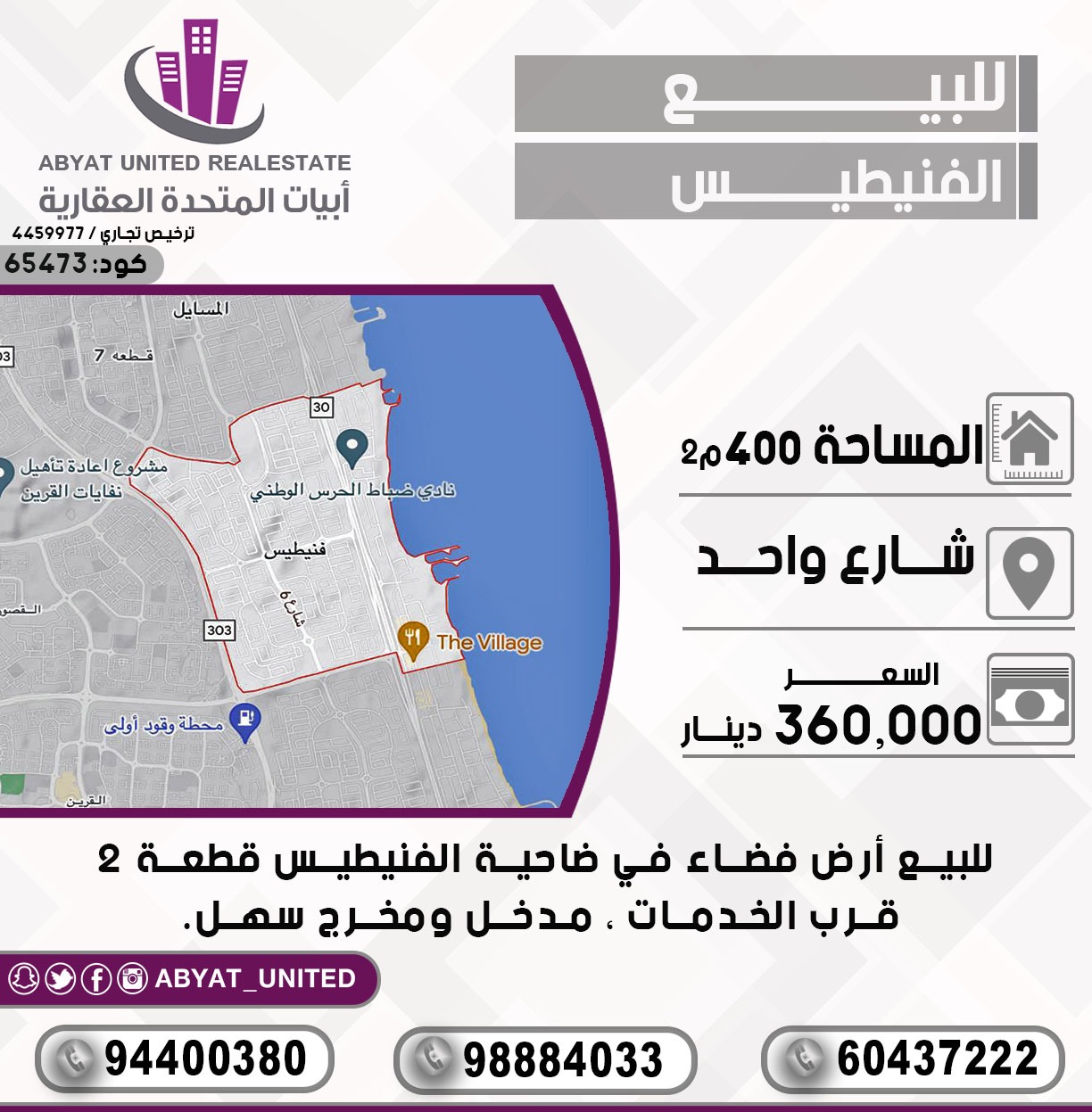 للبيع ارض فضاء في ضاحية الفنيطيس ، قطعة 2 ، الموقع شارع واحد ، المساحة 400 متر مربع ، قرب الخدمات ، مدخل ومخرج سهل. للاستفسار النقال 1 94400380 ، النقال 2 98884033 ، النقال 3 60437222
