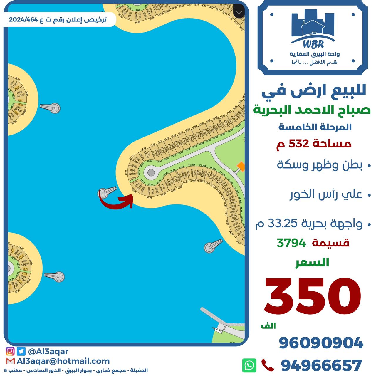 ارض للبيع بصباح الاحمد البحرية Share ملخص للبيع أرض في صباح الاحمد البحريه المرحلة الخامسة ، مساحتها 532 متر مربع ، تقع على بطن وظهر وسكه على راس الخور واجهه بحرية 33.25 متر قسيمة رقم 3794 ، السعر 350 ألف د.ك . التفاصيل حالة: للبيع Page Views الأماكن القريبة من جوجل خصائص ذات صلة للبيع تجربة عنصر للبيع abdulrahman منذ أسبوعين للبيع د.ك111111 شقة تجربة عقار جديد خليل بوست أسرة: 666666 الحمامات: 666666 admin منذ 4 أسابيع Close
