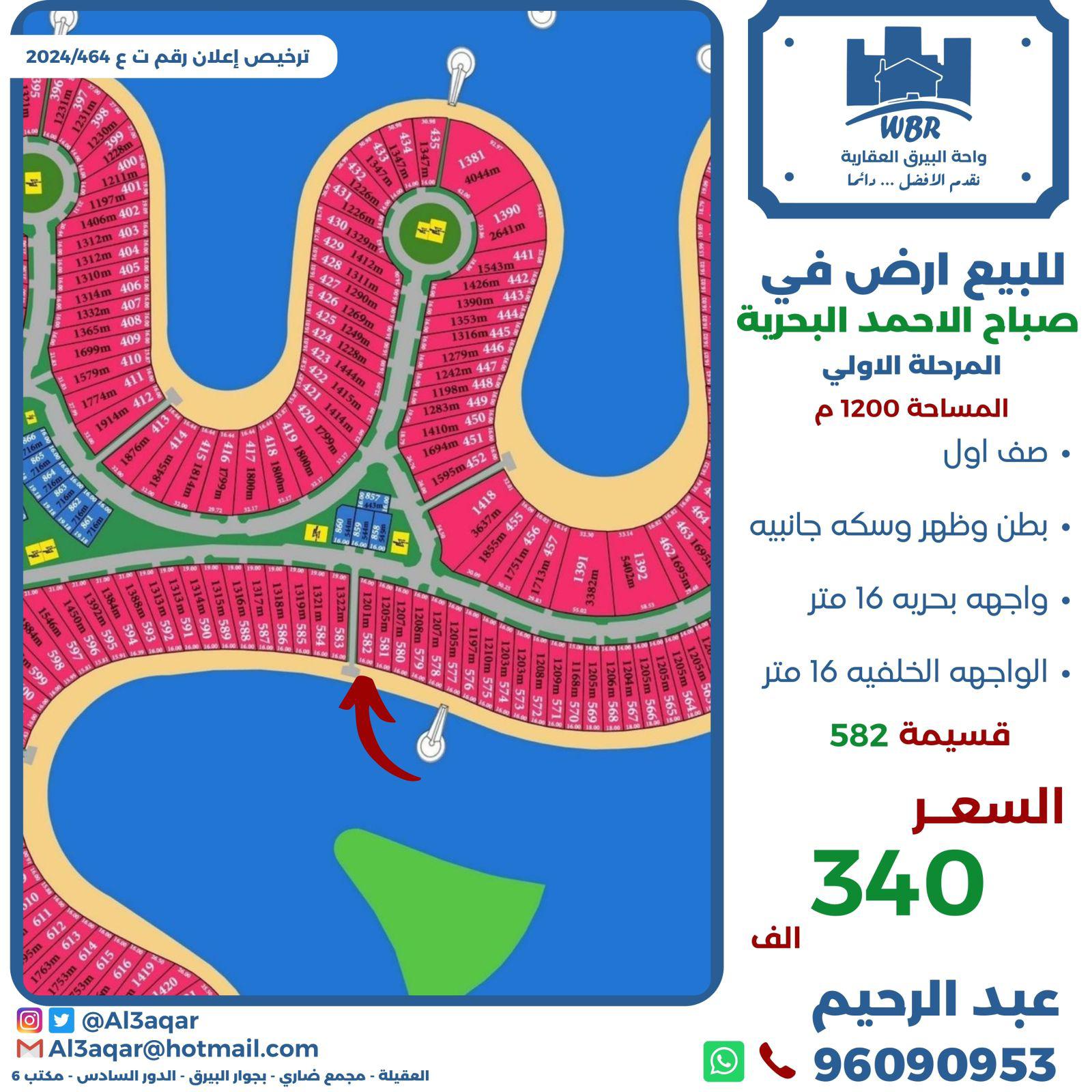 ارض للبيع بصباح الاحمد البحرية Share ملخص للبيع ارض فى صباح الاحمد البحريه المرحله الاولى ، صف اول ، مساحتها 1200 متر مربع ، تقع على بطن وظهر وسكه جانبيه ، واجهه بحريه 16 متر ، الواجهه الخلفيه 16 متر ، قسيمة 582 ، السعر 340 ألف د.ك . التفاصيل Page Views الأماكن القريبة من جوجل Close