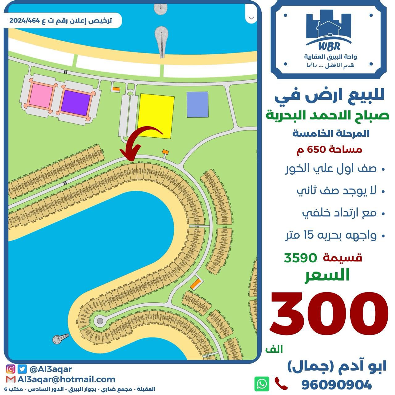 ارض للبيع فى البحريه الخامسه Share ملخص للبيع ارض فى صباح الاحمد البحرية ، المرحلة الخامسة ، المساحة 650 متر مربع ، صف اول ، على الخور ، لايوجد صف ثاني ، مع ارتداد خلفي ، واجهه بحرية 15 متر ، السعر 300 ألف د.ك التفاصيل Page Views الأماكن القريبة من جوجل Close
