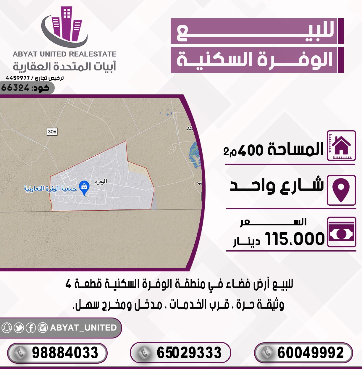 السعر 115 ألف د.ك ، الكود 66324