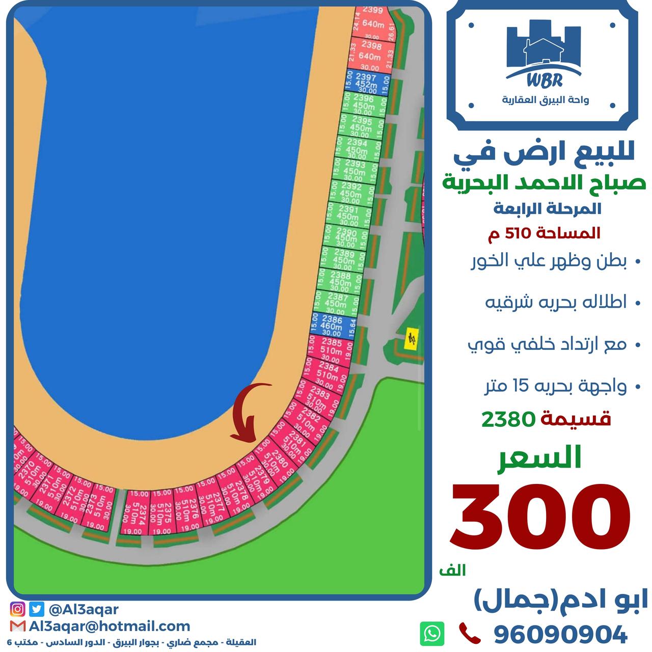 ارض للبيع فى صباح الاحمد البحرية Share ملخص للبيع ارض في صباح الاحمد البحريه ، المرحله الرابعه B ، الموقع بطن وظهر ، علي الخور ، اطلاله بحريه شرقيه مع ارتداد خلفي قوي ، مساحه 510 متر مربع واجهة بحريه 15 متر ، قسيمه 2380 ، السعر 300 ألف د.ك التفاصيل Page Views الأماكن القريبة من جوجل Close