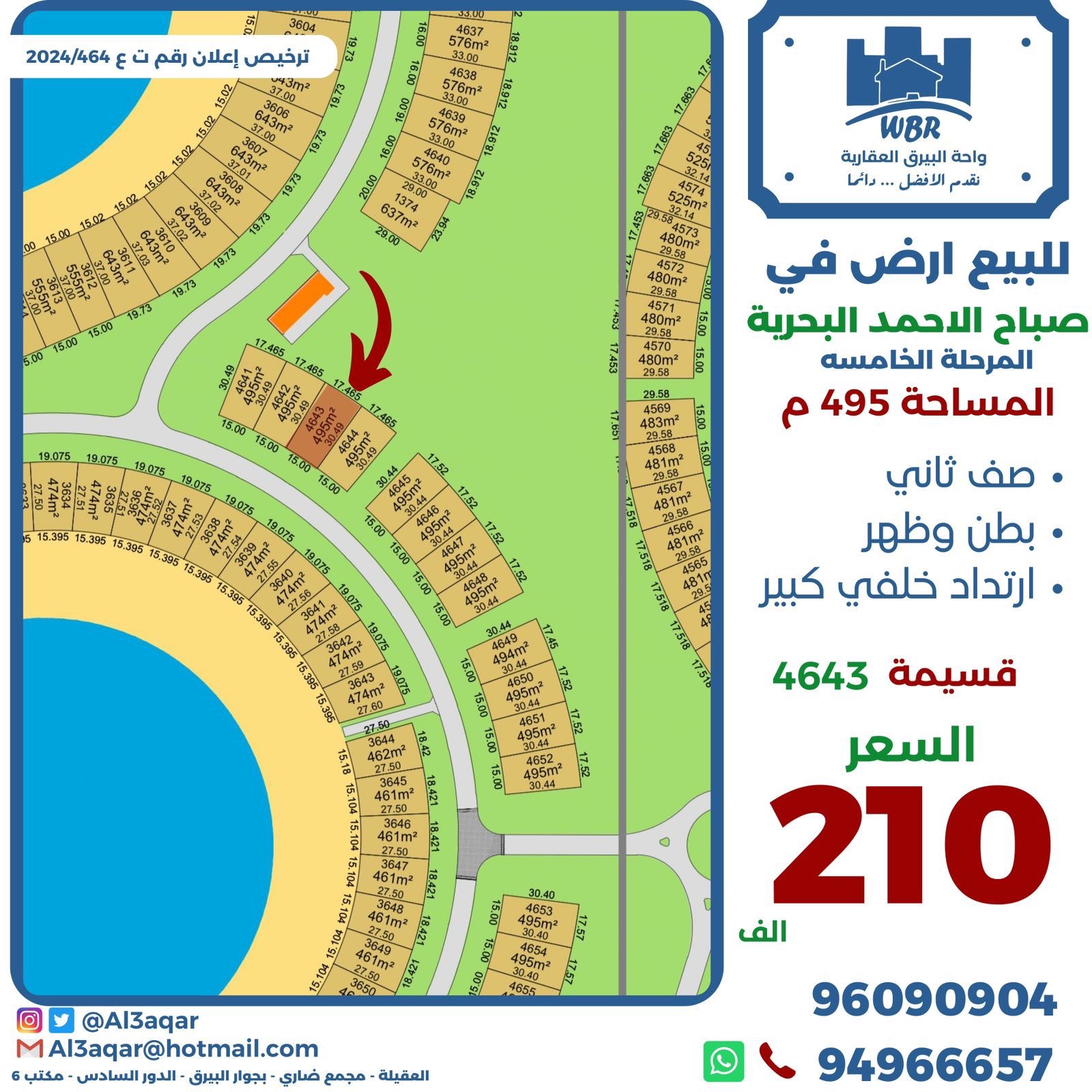 ارض للبيع فى صباح الاحمد البحرية Share ملخص للبيع ارض فى صباح الاحمد البحرية المرحلة الخامسة ، مساحتها 495 متر مربع ، صف ثانى ، تقع على بطن وظهر ، ارتداد خلفى كبير ، قسيمة 4643 ، السعر 210 ألف د.ك . التفاصيل Page Views الأماكن القريبة من جوجل Close