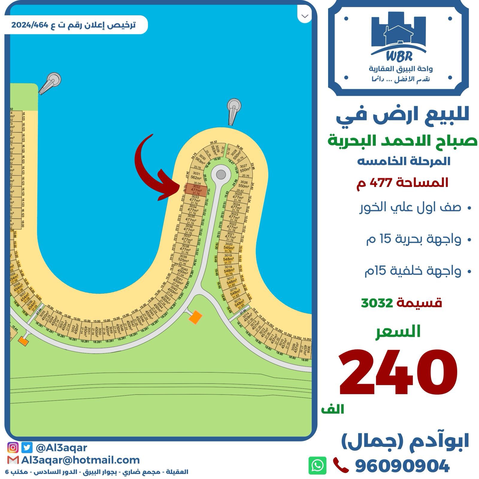 ارض للبيع فى صباح الاحمد البحرية Share ملخص للبيع ارض فى صباح الاحمد البحرية ، المرحلة الخامسة ، المساحة 477 متر مربع ، صف اول ، على الخور ، واجهه بحرية 15 متر ، واجهه خلفية 15 متر ، السعر 240 ألف د.ك التفاصيل Page Views الأماكن القريبة من جوجل Close