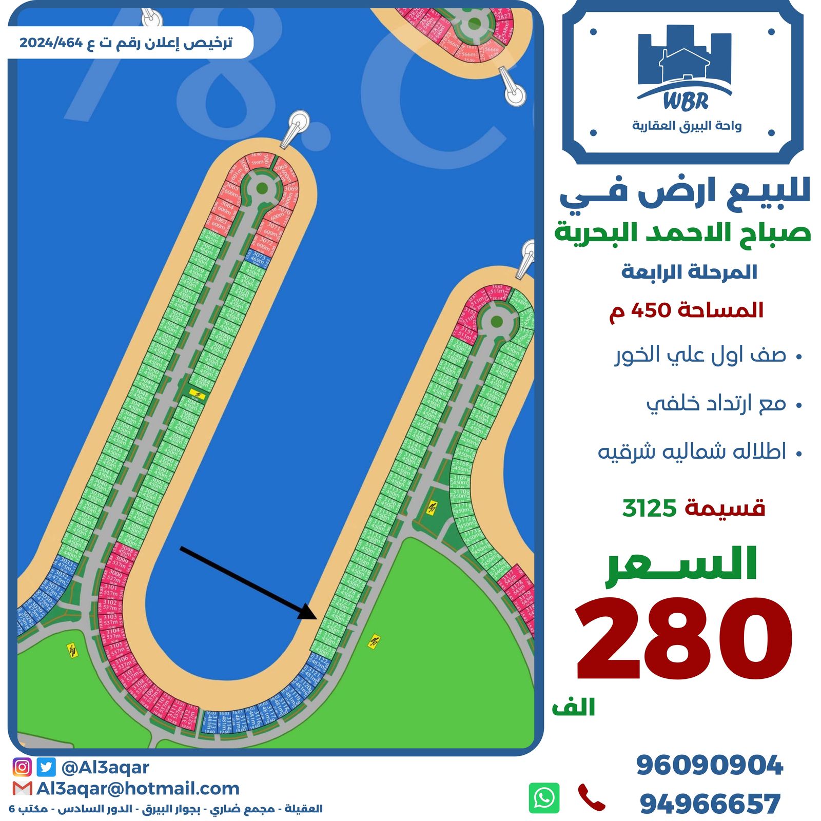 ارض للبيع في البحريه الرابعه Share ملخص للبيع أرض فى صباح الاحمد البحريه ، المرحله الرابعه A ، صف اول علي الخور ، مع ارتداد خلفي ، اطلاله شماليه شرقيه ، مساحتها 450 متر مربع ، قسيمه 3125 ، السعر 280 ألف د.ك التفاصيل حالة: للبيع Page Views الأماكن القريبة من جوجل خصائص ذات صلة للبيع تجربة عنصر للبيع abdulrahman منذ أسبوعين للبيع د.ك111111 شقة تجربة عقار جديد خليل بوست أسرة: 666666 الحمامات: 666666 admin منذ 4 أسابيع Close