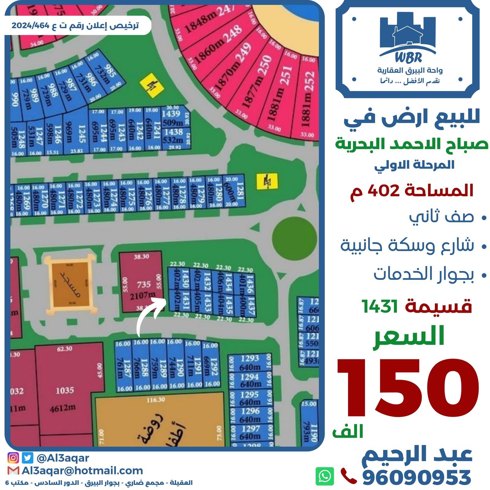 ارض مميزه للبيع في البحريه الاولى Share ملخص للبيع ارض في صباح الاحمد البحرية ، المرحلة الاولى ، مساحتها 402 متر مربع ، صف ثاني ، تقع على شارع وسكه جانبية. بجوار الخدمات قسيمة 1431 ، السعر 150 ألف د.ك التفاصيل حالة: للبيع Page Views الأماكن القريبة من جوجل خصائص ذات صلة للبيع تجربة عنصر للبيع abdulrahman منذ أسبوعين للبيع د.ك111111 شقة تجربة عقار جديد خليل بوست أسرة: 666666 الحمامات: 666666 admin منذ 4 أسابيع Close