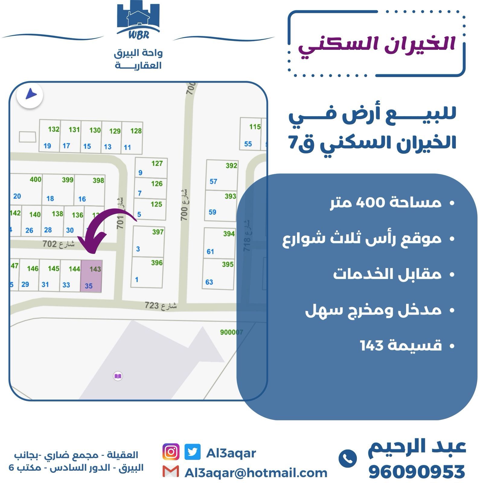ارض موقع للبيع فى الخيران السكنى Share ملخص للبيع أرض فى الخيران السكني ، قطعة 7 ، مساحتها 400 متر مربع ، تقع على رأس ثلاث شوارع ، مقابل الخدمات ، مدخل ومخرج سهل ، قسيمة 143 التفاصيل حالة: للبيع Page Views الأماكن القريبة من جوجل خصائص ذات صلة للبيع تجربة عنصر للبيع abdulrahman منذ 3 أسابيع للبيع د.ك111111 شقة تجربة عقار جديد خليل بوست أسرة: 666666 الحمامات: 666666 admin منذ 4 أسابيع Close