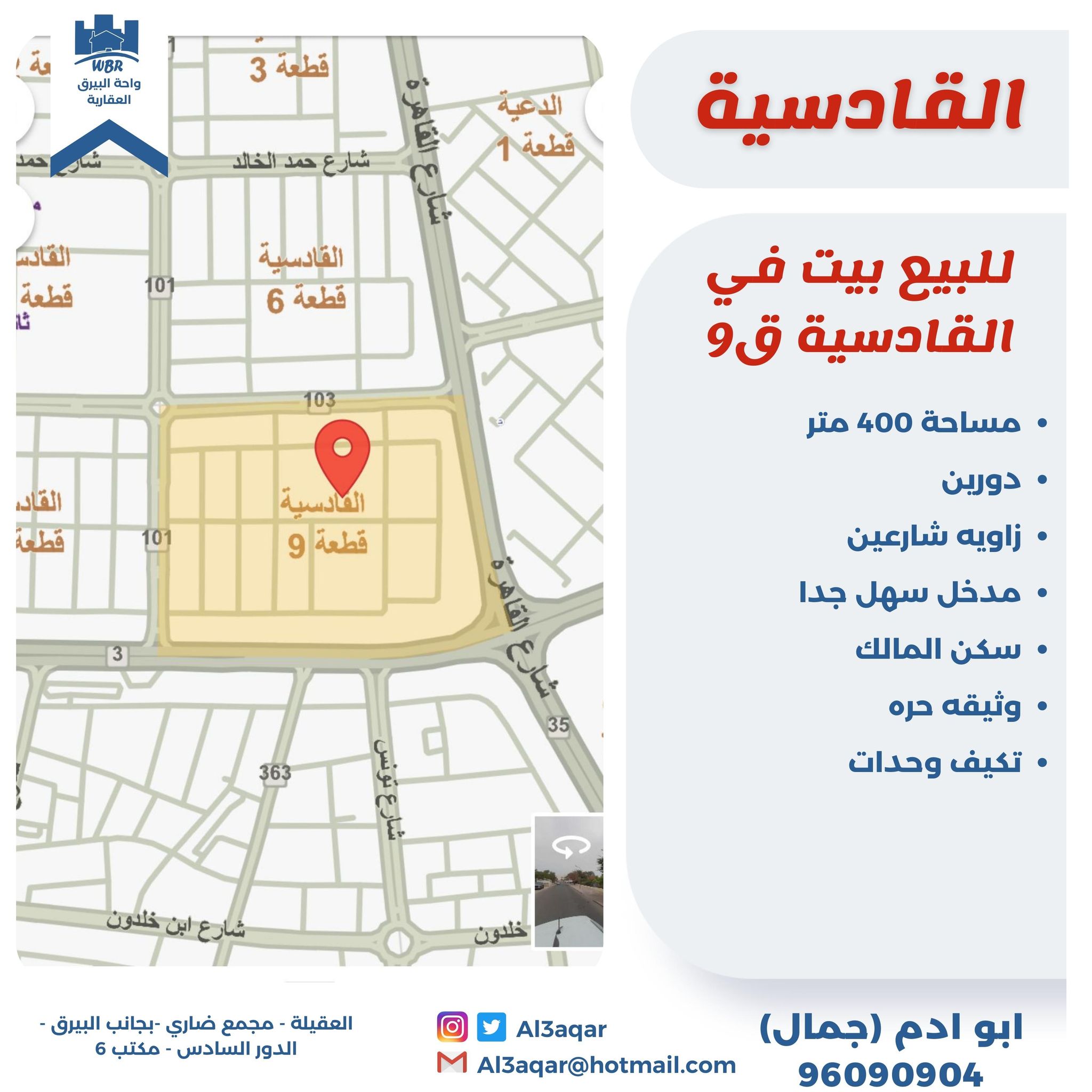 بيت دورين للبيع فى القادسيه Share ملخص للبيع بيت فى القادسيه ، مكون من دورين ، يقع على زاويه شارعين ، مساحته 400 متر مربع ، مدخل سهل جدا ، سكن المالك ، وثيقه حره ، تكييف وحدات التفاصيل حالة: للبيع Page Views الأماكن القريبة من جوجل خصائص ذات صلة للبيع تجربة عنصر للبيع abdulrahman منذ أسبوعين للبيع د.ك111111 شقة تجربة عقار جديد خليل بوست أسرة: 666666 الحمامات: 666666 admin منذ 3 أسابيع Close