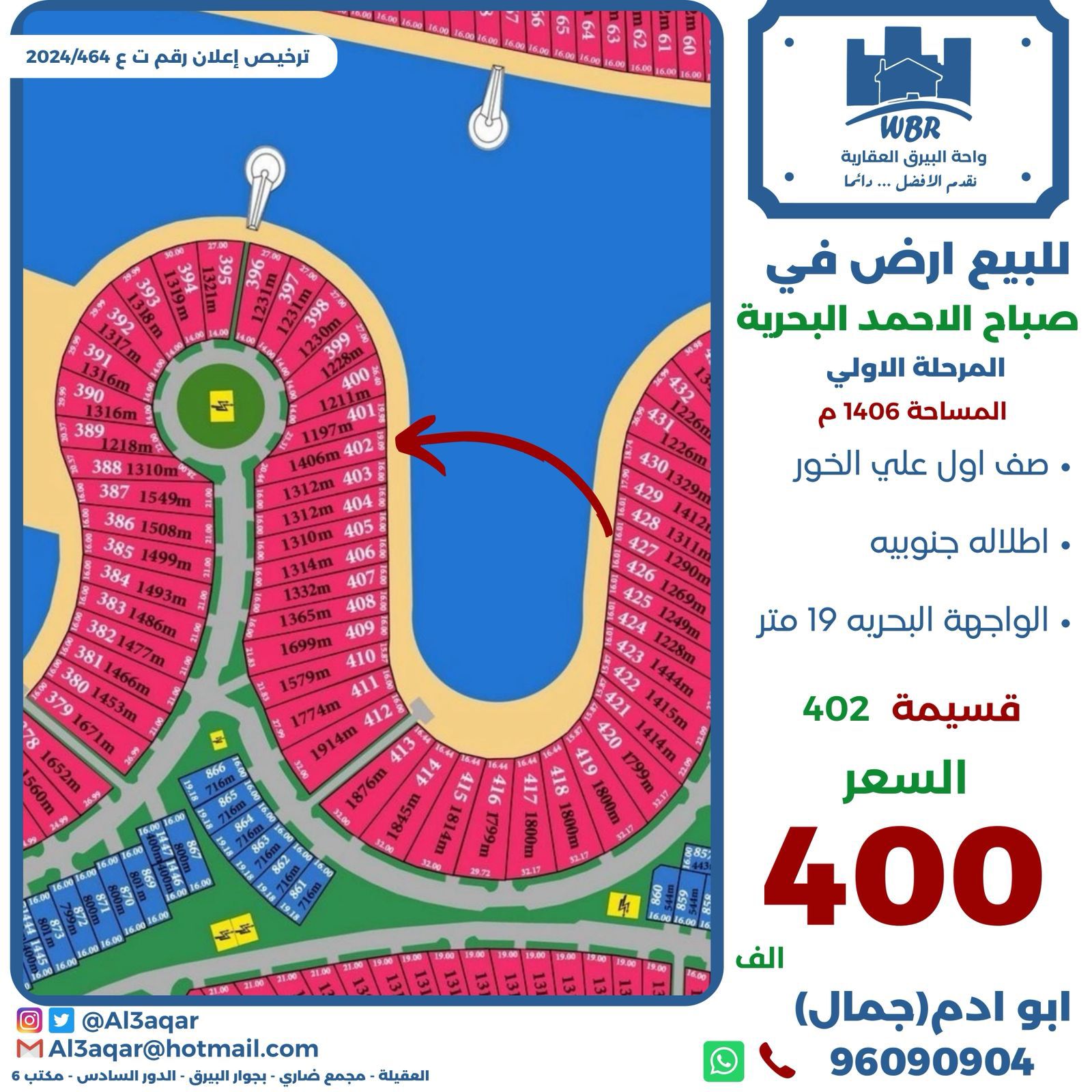 للبيع بيت في الجابرية قطعه 9 ، المميزة , يقع على شارع واحد مقابل براحة ، مساحته 550 متر مربع ، يتكون من دورين ونص وسرداب ، حمام سباحة , السعر 750 ألف د.ك , رقم الكود 6677 , دروازة الصفاة العقارية , للتواصل 97578455 ، 55572647 ، 97116767 ترخيص إعلانات رقم ت ع 161 ، 2024