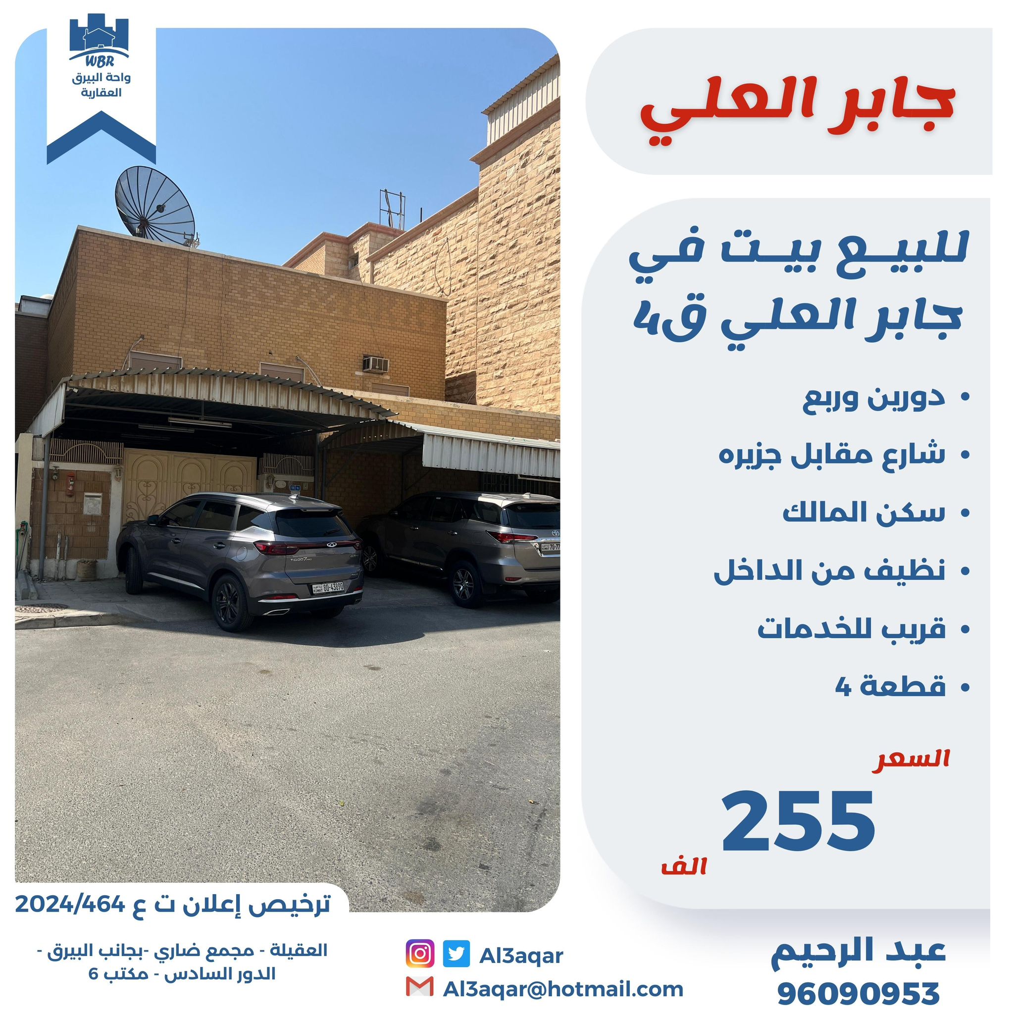 بيت للبيع فى جابر العلى Share ملخص للبيع بيت فى جابر العلى دورين وربع ، شارع مقابل جزيره ، سكن المالك ، نظيف من الداخل ، قطعه 4 ، قريب للخدمات ، السعر 255 ألف د.ك . التفاصيل حالة: للبيع Page Views الأماكن القريبة من جوجل خصائص ذات صلة للبيع تجربة عنصر للبيع abdulrahman منذ 4 أسابيع للبيع بيت للبيع فى الجابرية سكن المالك admin منذ شهر واحد Close