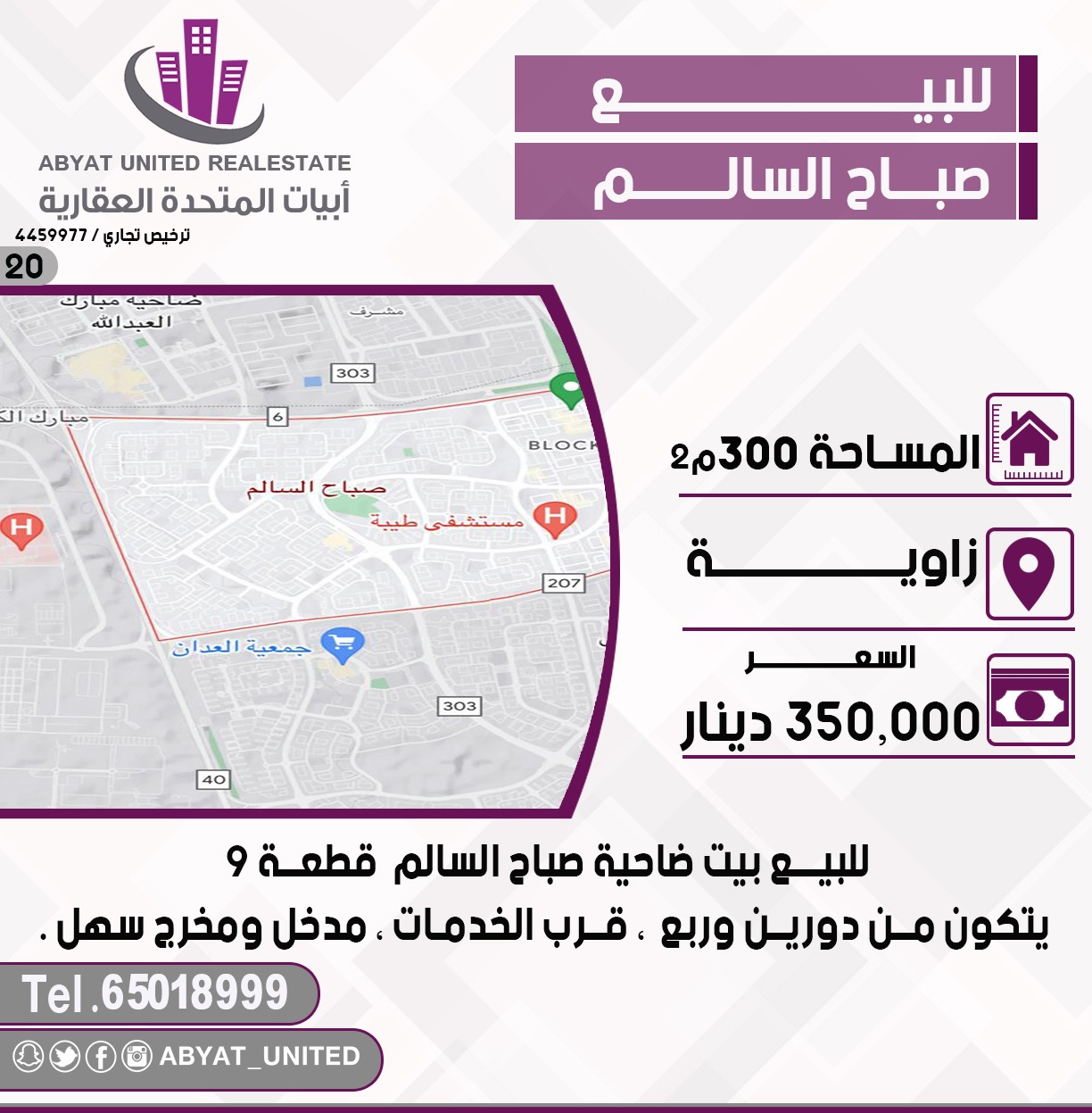 بيت للبيع فى ضاحية صباح السالم Share ملخص للبيع بيت في ضاحيه صباح السالم قطعة 9 ، المساحة 300 متر مربع ، الموقع زاويه ، يتكون من دورين وربع ، قرب الخدمات ، مدخل ومخرج سهل ، للاستفسار ، النقال 1 ، 65018999 ، السعر 350 ألف د.ك ، كود . 20 التفاصيل Page Views الأماكن القريبة من جوجل Close