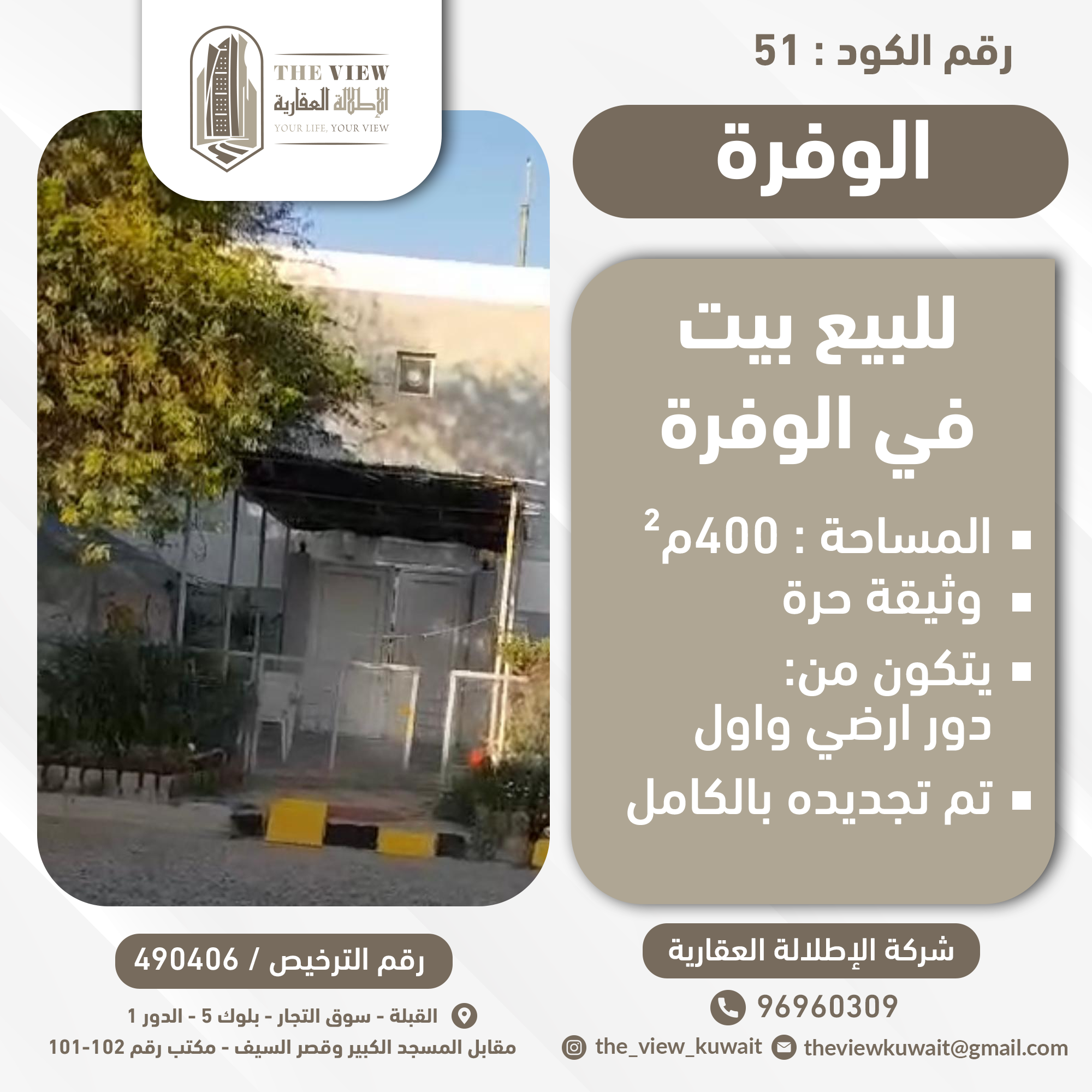 بيت للبيع في الوفره السكنيه Share ملخص للبيع بيت فى الوفره السكنيه ، مساحته 400 مربع ، وثيقه حره ، يتكون من دور ارضي واول تم تجديده بالكامل رقم ترخيص 490406 ، كود 51 للتواصل 55683559 ، مهندس محمد التفاصيل حالة: للبيع Page Views الأماكن القريبة من جوجل خصائص ذات صلة للبيع تجربة عنصر للبيع abdulrahman منذ 4 أسابيع للبيع قسيمه بطن وظهر للبيع فى السلام admin منذ شهرين Close