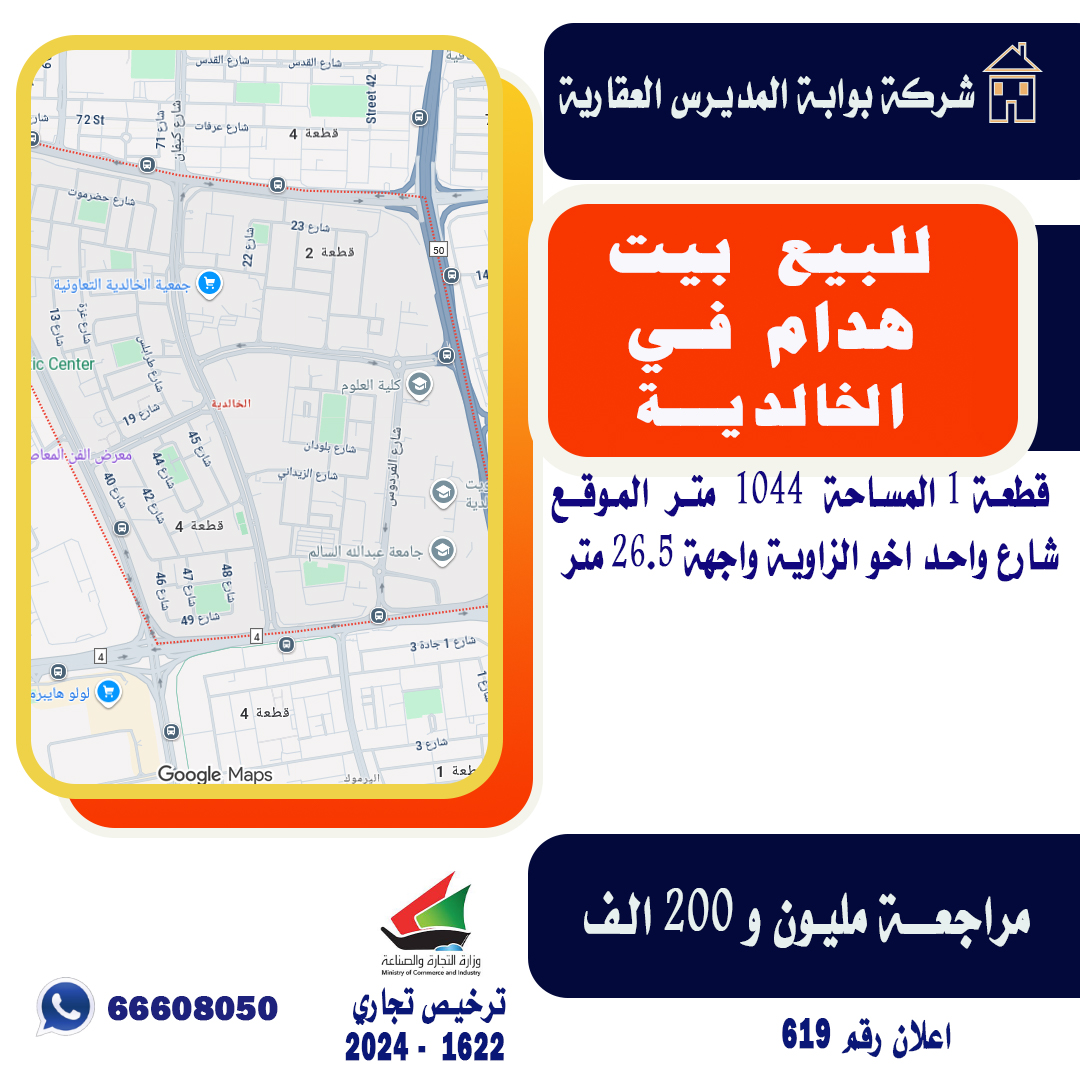بيت هدام للبيع فى الخالدية Share ملخص للبيع بيت هدام فـي الخالدية ، قطعة 1. المساحة 1044 متر مربع ، المـوقـع شارع واحد اخو الزاوية واجهة 26.5 متر مراجعة ، مليون و 200 ألف د.ك يمنع الوسطاء شركة بوابة المديرس العقارية اعلان رقم 619 التفاصيل حالة: للبيع Page Views الأماكن القريبة من جوجل خصائص ذات صلة للبيع تجربة عنصر للبيع abdulrahman منذ 4 أسابيع للبيع للبيع أرض بالخيران السكنية قطعة 2 بطن وظهر admin منذ شهرين Close