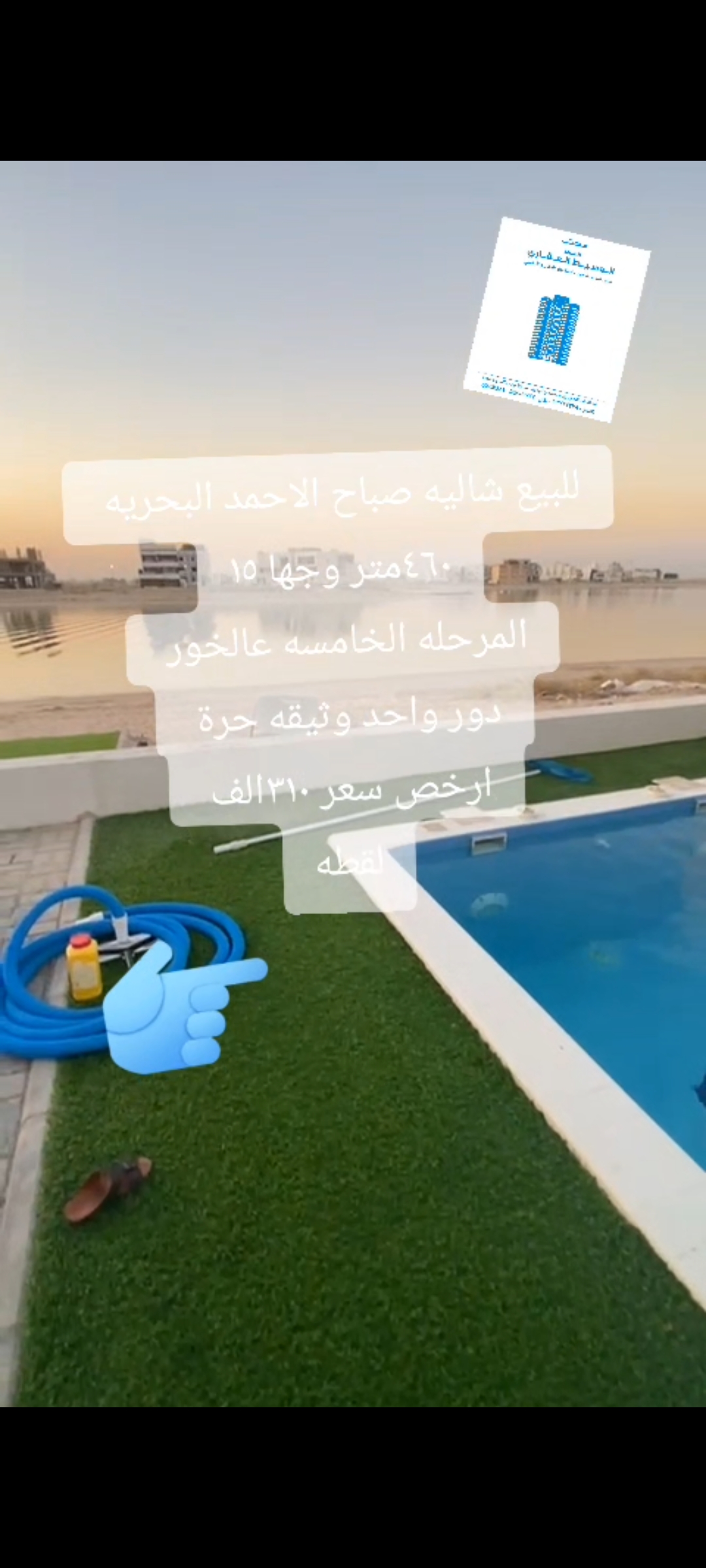 شاليه للبيع بصباح الاحمد البحريه Share ملخص للبيع شاليه صباح الاحمد البحريه ، مساحته 460 متر مربع ، واجهه 15متر ، عالخور ، يتكون من دور واحد ، حمام سباحه وثيقه حرة ، بيع 315 ألف د.ك لقطه التفاصيل حالة: للبيع Page Views الأماكن القريبة من جوجل خصائص ذات صلة للبيع تجربة عنصر للبيع abdulrahman منذ 3 أسابيع للبيع د.ك111111 شقة تجربة عقار جديد خليل بوست أسرة: 666666 الحمامات: 666666 admin منذ 4 أسابيع Close