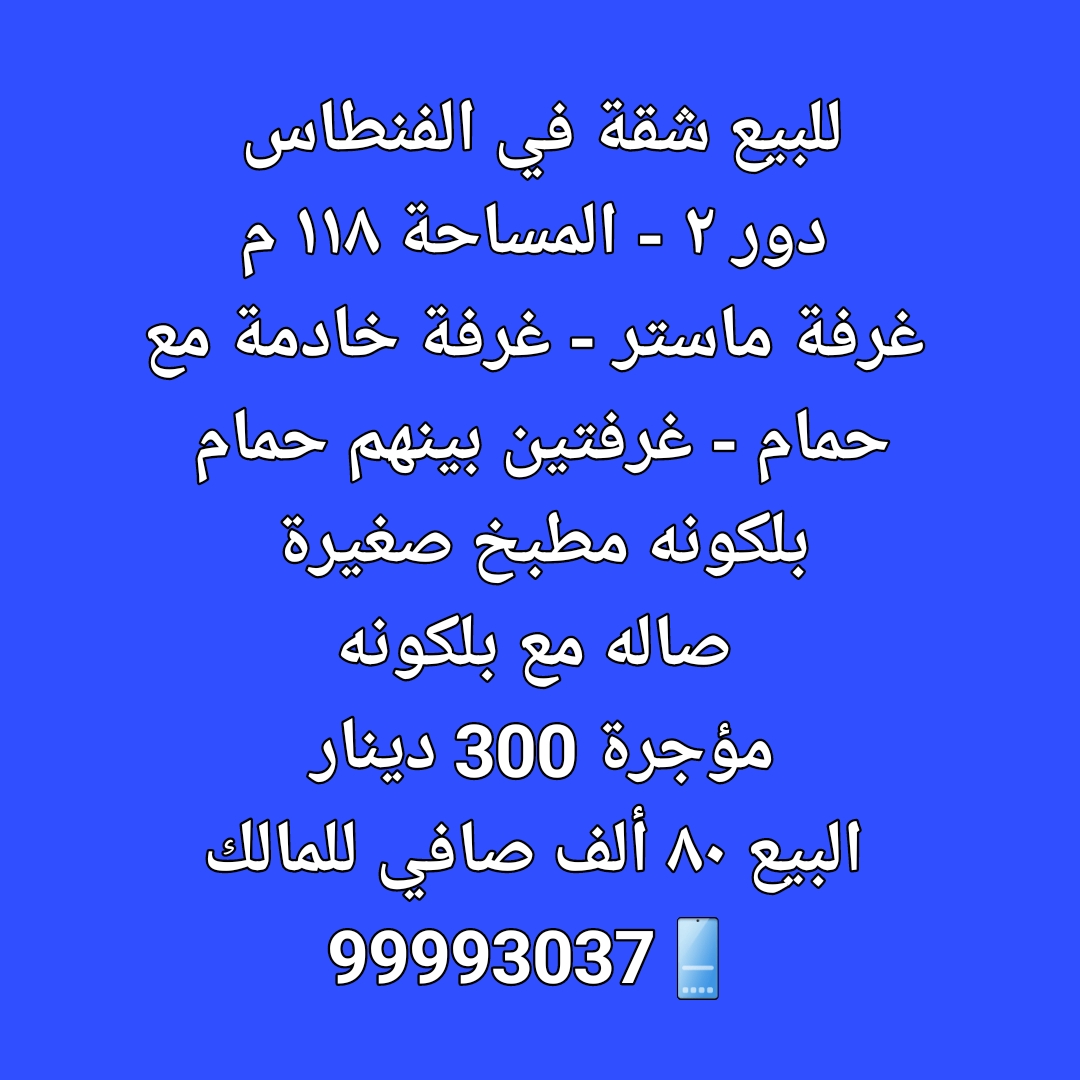 شقه للبيع في الفنطاس الدور الثاني Share ملخص للبيع شقة في الفنطاس ، مساحتها 118 متر مربع ، الدور الثاني ، مؤجرة 300 دينار كويتى ، صافي للمالك 80 ألف د.ك التفاصيل حالة: للبيع Page Views الأماكن القريبة من جوجل خصائص ذات صلة للبيع تجربة عنصر للبيع abdulrahman منذ 4 أسابيع للبيع ارض فضاء للبيع فى ابو فطيره admin منذ شهرين Close