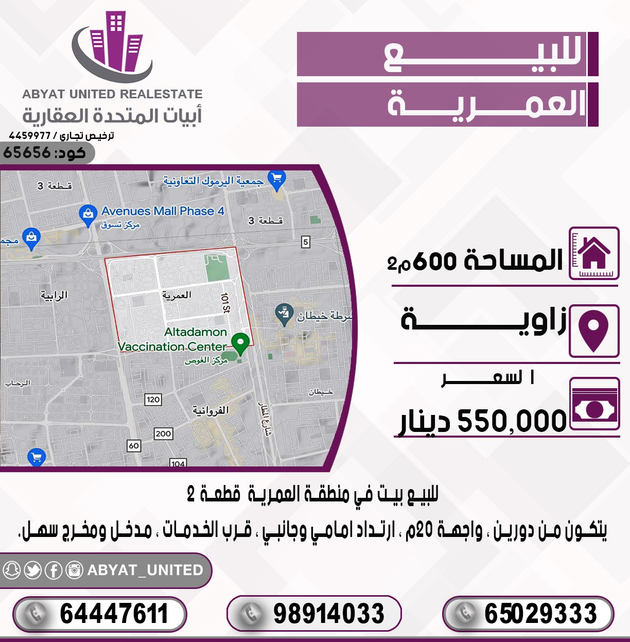 للاستفسار ، النقال 1 64447611 ، النقال 2 98914033. النقال3 65029333 ، السعر 550 ألف دينار ، الكود 65656