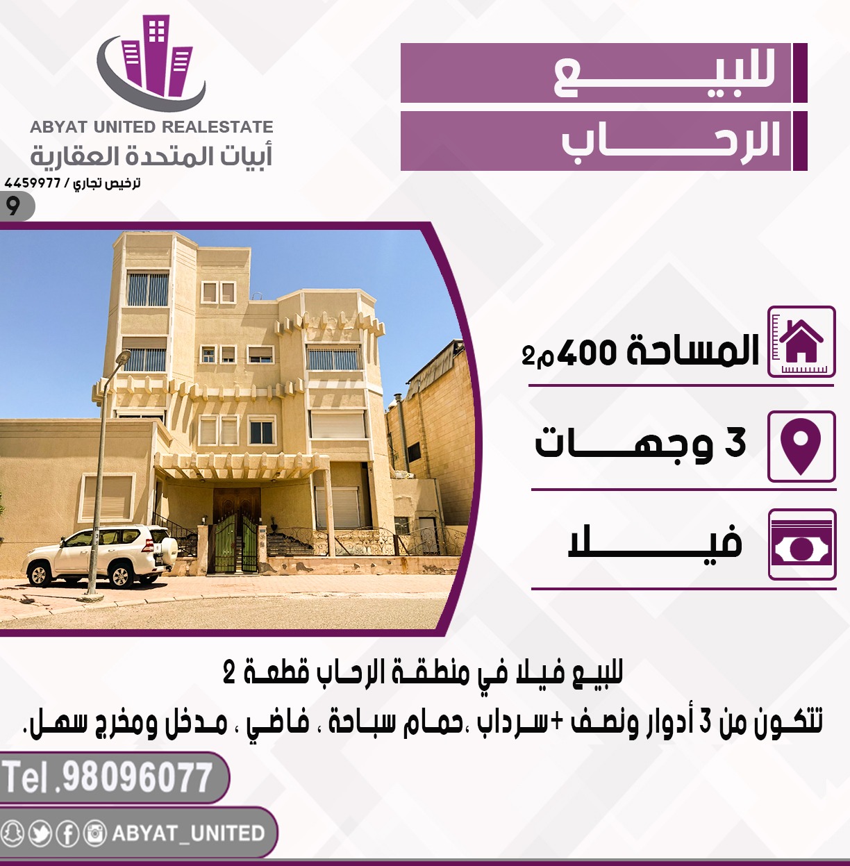 فيلا للبيع فى الرحاب ثلاث واجهات Share ملخص للبيع فيلا في منطقة الرحاب قطعة 2 ، تقع على 3 واجهات ، مساحتها 400 متر مربع ، تتكون من 3 ادوار ونصف ، سرداب ، حمام سباحة ، فاضية ، مدخل ومخرج سهل ، للاستفسار النقال 1 98096077 التفاصيل حالة: للبيع Page Views الأماكن القريبة من جوجل خصائص ذات صلة للبيع تجربة عنصر للبيع abdulrahman منذ أسبوعين للبيع د.ك111111 شقة تجربة عقار جديد خليل بوست أسرة: 666666 الحمامات: 666666 admin منذ 4 أسابيع Close