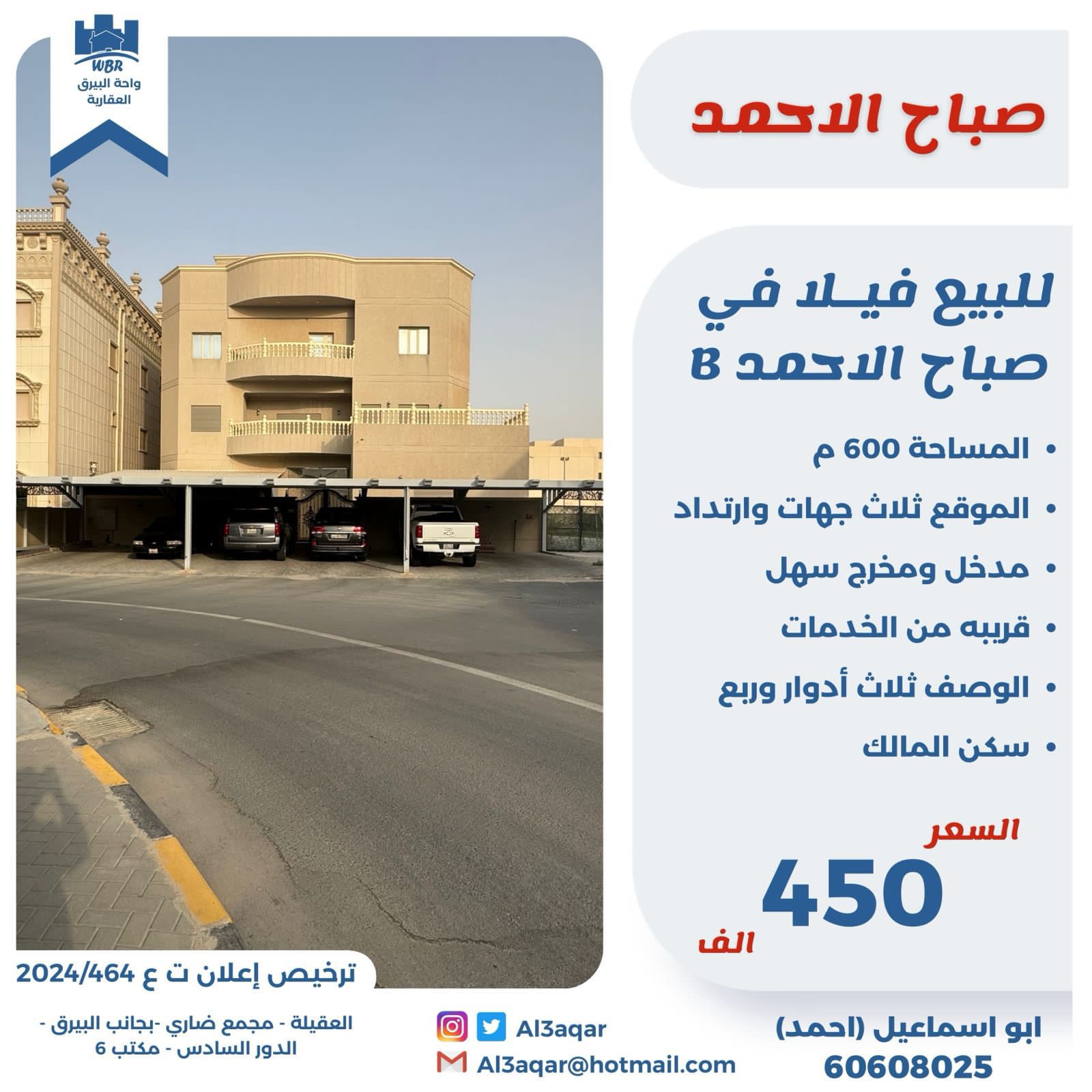 فيلا للبيع فى صباح الاحمد السكنية Share ملخص للبيع فيلا في صباح الاحمد B ، المساحة 600 متر مربع ، الموقع ثلاث جهات وارتداد ، مدخل ومخرج سهل ، قرببه من الخدمات الوصف ثلات ادوار وربع ، سكن المالك ، السعر 450 ألف د.ك التفاصيل Page Views الأماكن القريبة من جوجل Close