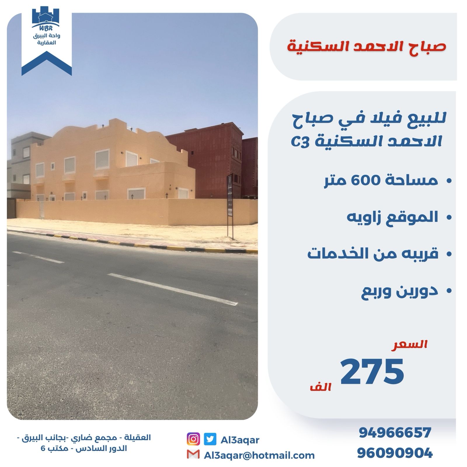 فيلا للبيع فى صباح الاحمد السكنية Share ملخص للبيع فيلا في صباح الاحمد السكنيه C 3 , مساحتها 600 متر مربع ، موقع زاوية ، تتكون من دورين وربع ، قريبه من الخدمات ، السعر 275ألف د.ك التفاصيل Page Views الأماكن القريبة من جوجل Close