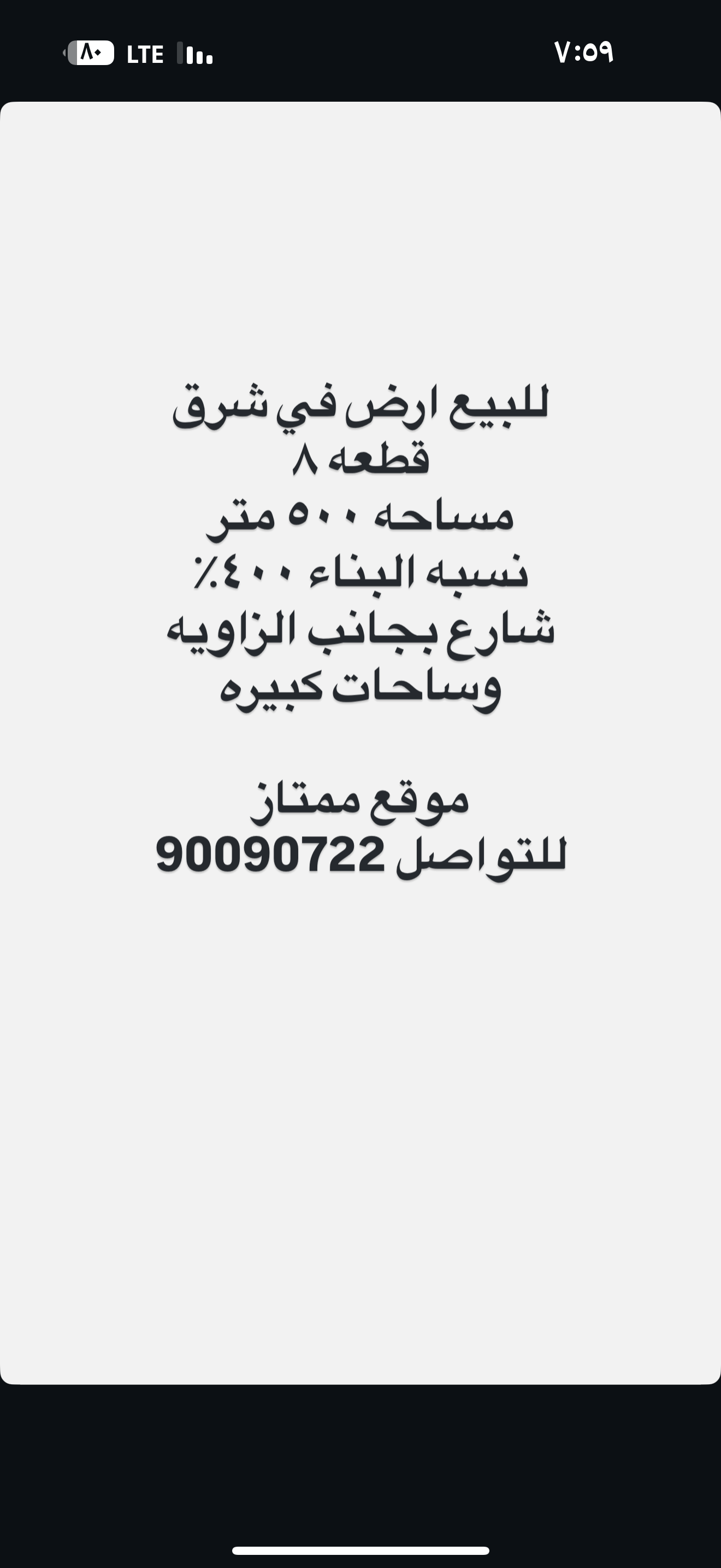 للبيع أرض فى شرق قطعة 8 Share ملخص للبيع أرض فى شرق قطعة 8 ، مساحتها 500 متر مربع ، نسبه البناء 400 بالمئة ، تقع على شارع بجانب الزاويه وساحات كبيره ، موقع ممتاز ، للتواصل 90090722 التفاصيل حالة: للبيع Page Views الأماكن القريبة من جوجل خصائص ذات صلة للبيع تجربة عنصر للبيع abdulrahman منذ أسبوعين للبيع د.ك111111 شقة تجربة عقار جديد خليل بوست أسرة: 666666 الحمامات: 666666 admin منذ 3 أسابيع Close