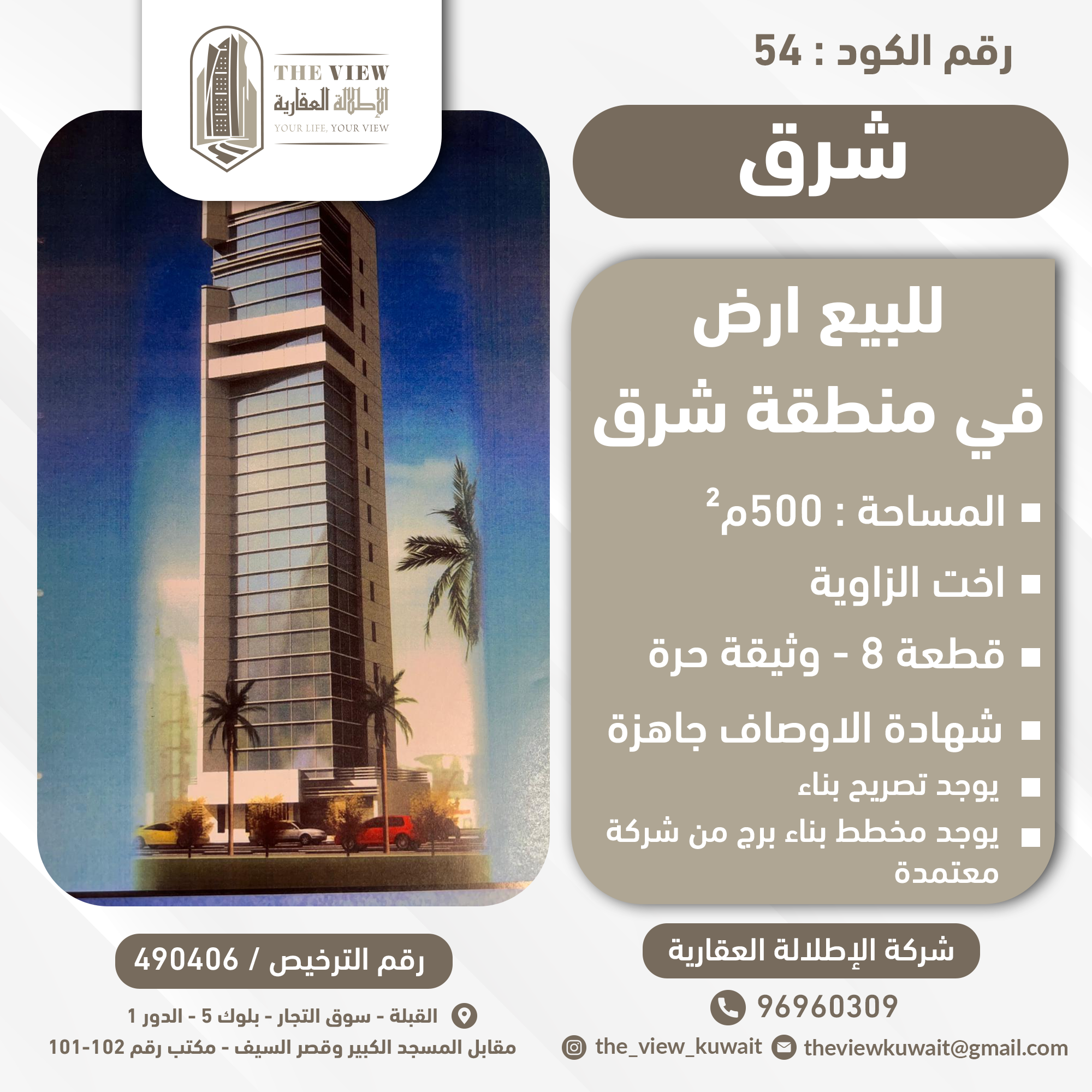 للبيع أرض فى منطقة شرق قطعة 8 ، مساحته 500 متر مربع اخت الزاوية ، وثيقة حرة ، شهادة الاوصاف جاهزة ، يوجد تصريح بناء ، يوجد مخطط بناء برج من شركة معتمدة ، السوم مليون ونص دينار البيع فرق السعر .
