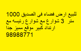 للبيع ارض فضاء فى الصديق ، مساحتها 1000 متر مربع ، تقع على 3 شوارع ، مع شوارع رئيسه ، مع ارتداد كبير ، موقع مميز جدا ، 98988771