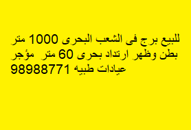 للبيع برج فى الشعب البحرى Share ملخص للبيع برج فى الشعب البحرى ، مساحته 1000 متر مربع ، يقع على بطن وظهر و إرتداد بحرى 60 متر ، مؤجر عيادات طبيه ، للتواصل 98988771 التفاصيل حالة: للبيع Page Views الأماكن القريبة من جوجل خصائص ذات صلة للبيع تجربة عنصر للبيع abdulrahman منذ أسبوعين للبيع د.ك111111 شقة تجربة عقار جديد خليل بوست أسرة: 666666 الحمامات: 666666 admin منذ 3 أسابيع Close