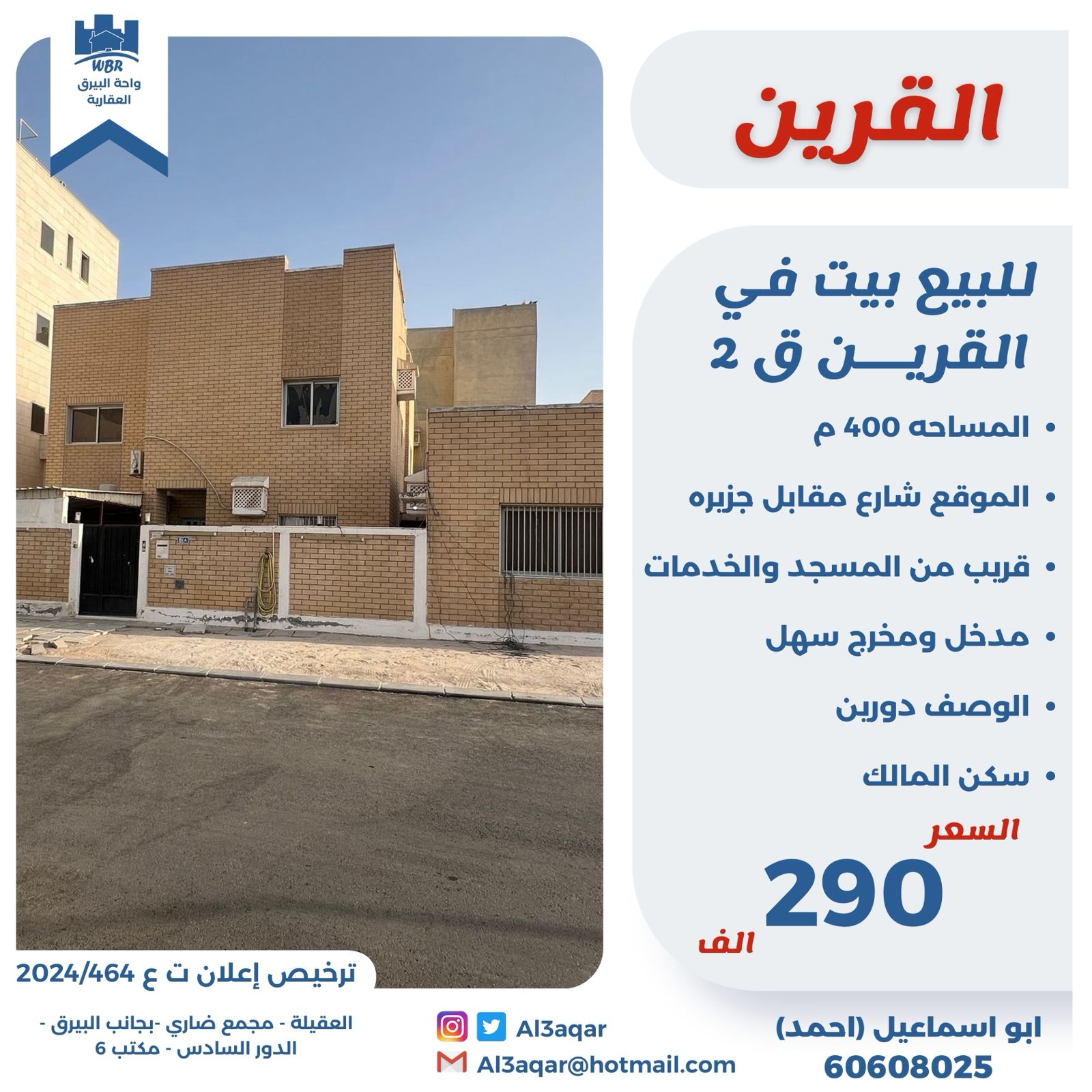 للبيع بيت حكومي فى منطقة القرين Share ملخص للبيع بيت حكومي فى القرين ، مساحته 400 متر مربع ، يقع على شارع مقابل جزيره قريب من المسجد والخدمات مدخل ومخرج سهل االوصف يتكون من دورين ، سكن المالك ، السعر 290 ألف دينار . التفاصيل حالة: للبيع Page Views الأماكن القريبة من جوجل خصائص ذات صلة للبيع تجربة عنصر للبيع abdulrahman منذ 4 أسابيع للبيع بيت للبيع فى العارضية رواق المنطقة admin منذ شهرين Close