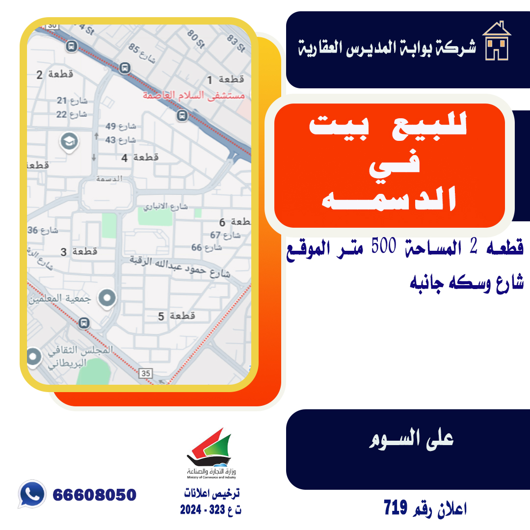 للبيع بيت فى الدسمة قطعة 2 Share ملخص للبيع بيت فى الدسمة قطعه 2 ، مساحته 500 متر مربع ، يقع على شارع وسكة جانبة السعر على السوم يمنع الوسطاء ، شركة بوابة المديرس العقارية اعلان رقم 719 التفاصيل حالة: للبيع Page Views الأماكن القريبة من جوجل خصائص ذات صلة للبيع تجربة عنصر للبيع abdulrahman منذ 3 أسابيع للبيع د.ك111111 شقة تجربة عقار جديد خليل بوست أسرة: 666666 الحمامات: 666666 admin منذ 4 أسابيع Close