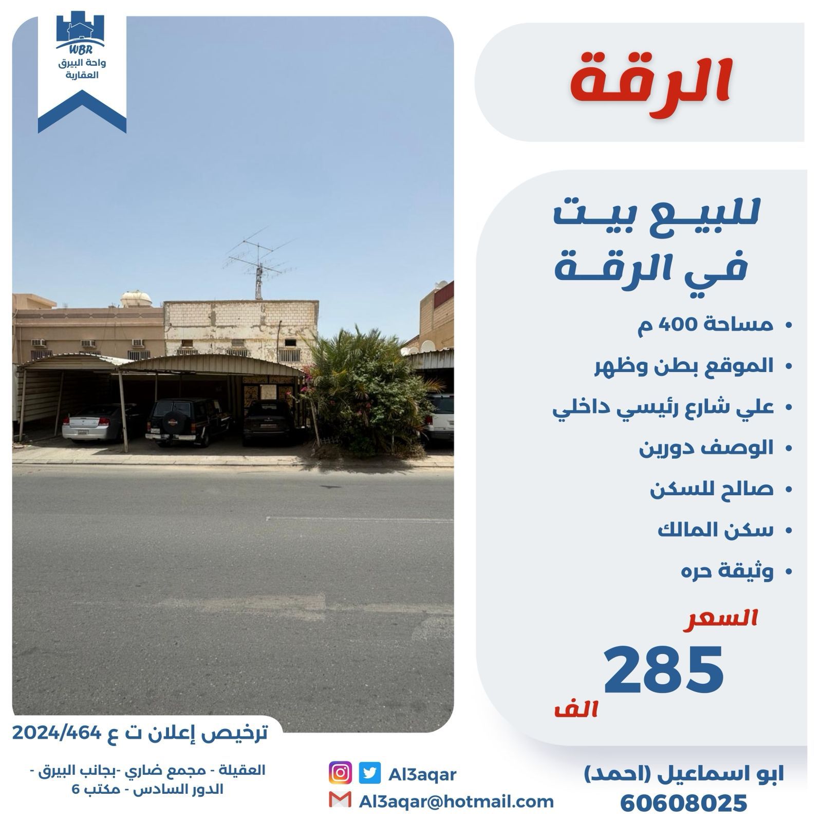 للبيع بيت فى الرقة بطن وظهر Share ملخص للبيع بيت فى الرقة ، مساحته 400 متر مربع ، يقع على بطن وظهر على شارع رئيسي داخلي ، يتكون من دورين ، الوثيقة حرة السعر 285 ألف دينار . التفاصيل حالة: للبيع Page Views الأماكن القريبة من جوجل خصائص ذات صلة للبيع تجربة عنصر للبيع abdulrahman منذ 4 أسابيع للبيع ارض للبيع فى ابوفطيره قطعه 2 admin منذ شهرين Close