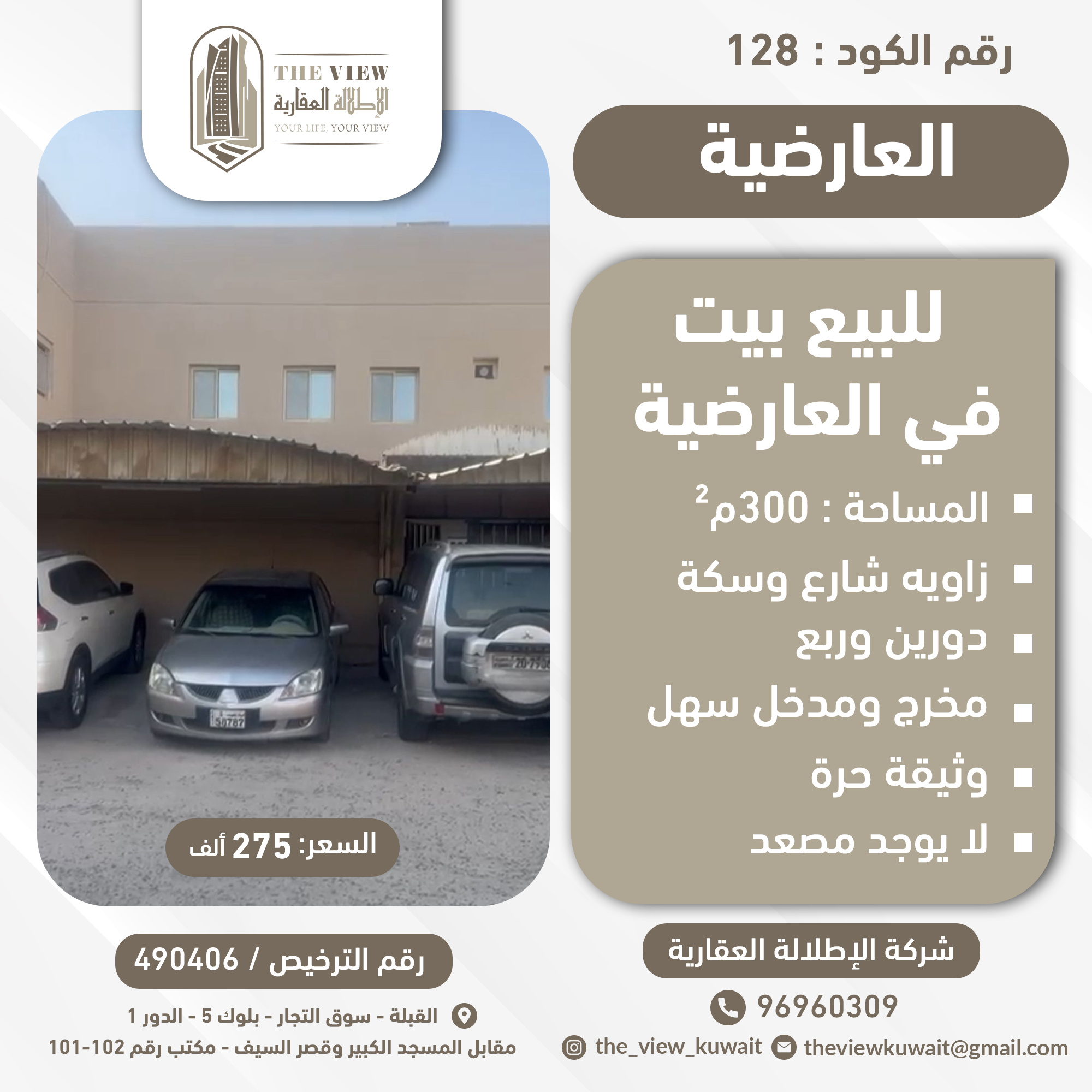 للبيع بيت فى العارضية زاوية Share ملخص للبيع بيت فى العارضية ، مساحته 300 متر مربع ، يقع على زاوية شارع وسكة ، يتكون من دورين وربع و مخرج ومدخل سهل وثيقة حرة ، لا يوجد مصعد ، السعر 275 ألف دينار . للتواصل مهندس محمد 55683559 التفاصيل حالة: للبيع Page Views الأماكن القريبة من جوجل خصائص ذات صلة للبيع تجربة عنصر للبيع abdulrahman منذ 4 أسابيع للبيع فيلا للبيع فى فهد الاحمد قطعة 3 admin منذ شهرين Close