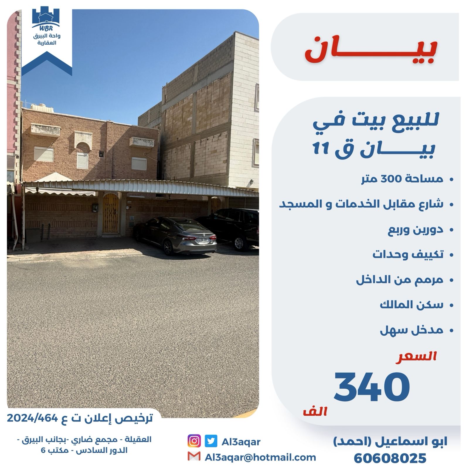 للبيع بيت فى بيان قطعة 11 Share ملخص للبيع بيت فى بيان قطعة 11 ، مساحته 300 متر مربع ، يقع على شارع مقابل الخدمات والمسجد ، يتكون من دورين وربع تكييف وحدات ، مرمم من الداخل ، سكن المالك مدخل سهل السعر 340 ألف د.ك . التفاصيل حالة: للبيع Page Views الأماكن القريبة من جوجل خصائص ذات صلة للبيع تجربة عنصر للبيع abdulrahman منذ 4 أسابيع للبيع ارض موقع للبيع في الصديق admin منذ شهرين Close