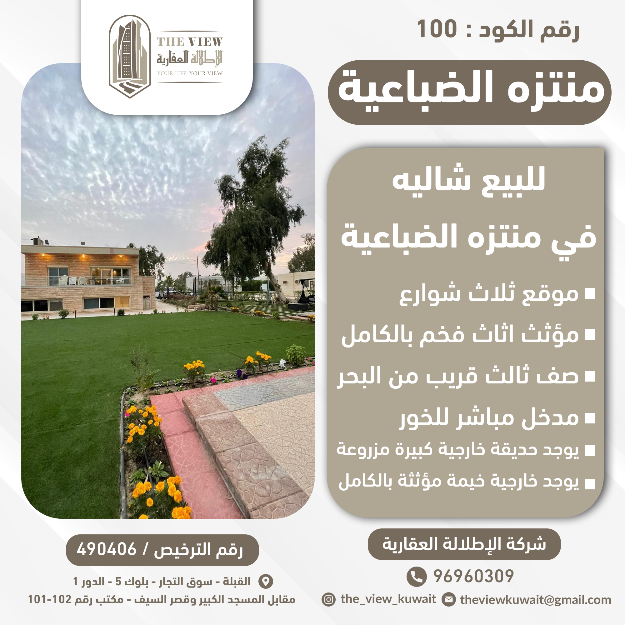 للبيع شاليه فى منتزه الضباعية ، موقع ثلاث شوارع ، مؤثث اثاث فخم بالكامل ، صف ثالث قريب من البحر ، مدخل مباشر للخور ، يوجد حديقة خارجية كبيرة مزروعة ، يوجد خارجية خيمة مؤثثة بالكامل .