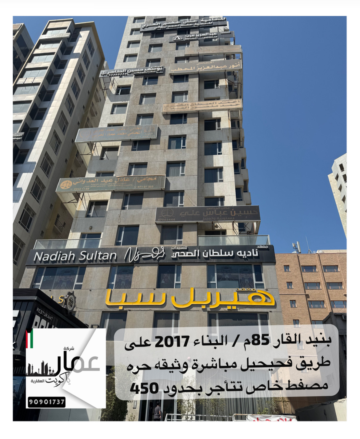 للبيع شقة تمليك فى بنيدالقار ، مساحتها 85 متر مربع ، موقع العماره مميز ، على طريق فحيحيل السريع بالدور الرابع عشر اطلاله كامله لوبي راقي قريب جميع الخدمات ، مدخل ومخرج سهل ، مواقف سرداب وخارجيه ، العماره بنيان 2017 كل دور فيه شقتين تتكون من 3 غرف حمامين صاله مطبخ و وثيقه حره و موقف خاص و مؤجره بسعر 450 دينار
