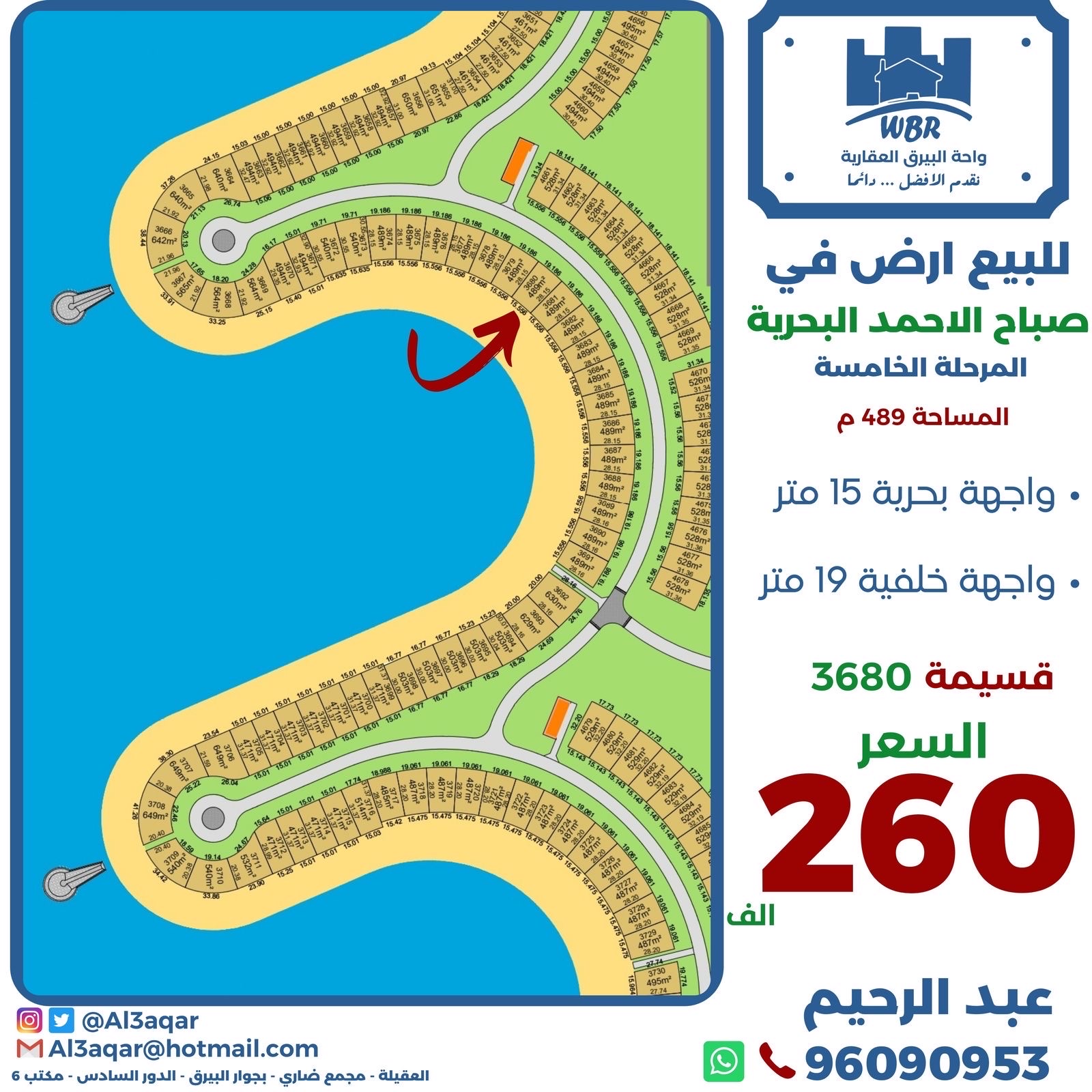 للبيع فى صباح الاحمد البحرية أرض صف أول Share ملخص للبيع أرض فى صباح الاحمد البحرية بالمرحلة الخامسة موقع صف أول ، مساحتها 489 متر مربع ، واجهة بحرية 15 متر مربع واجهة خلفية 19 متر ، قسيمة رقم 3680 ، السعر 260 ألف د.ك . التفاصيل حالة: للبيع Page Views الأماكن القريبة من جوجل خصائص ذات صلة للبيع تجربة عنصر للبيع abdulrahman منذ 3 أسابيع للبيع د.ك111111 شقة تجربة عقار جديد خليل بوست أسرة: 666666 الحمامات: 666666 admin منذ 4 أسابيع Close