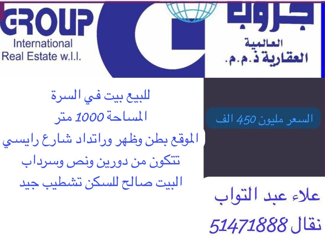 للبيع فيلا زاويه فى السره Share ملخص للبيع فيلا فى السرة ، المساحة 940 متر مربع ، الموقع زواية وسكة جانبية عريضة ، تتكون من دورين ونص ، نقال 51471888 التفاصيل حالة: للبيع Page Views الأماكن القريبة من جوجل خصائص ذات صلة للبيع تجربة عنصر للبيع abdulrahman منذ أسبوعين للبيع د.ك111111 شقة تجربة عقار جديد خليل بوست أسرة: 666666 الحمامات: 666666 admin منذ 3 أسابيع Close
