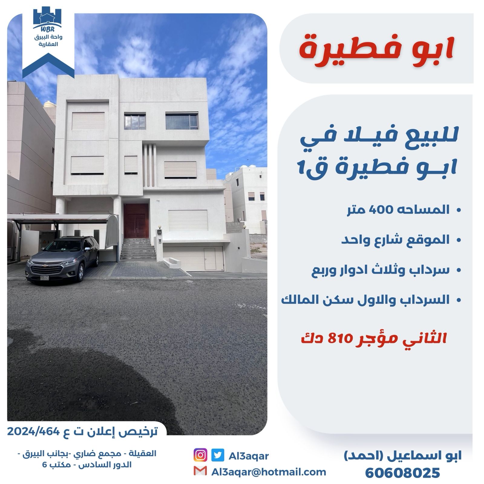 للبيع فيلا فى ابوفطيره قطعة 1 Share ملخص للبيع فيلا فى ابو فطيره قطعه 1 ، مساحتها 400 متر مربع ، تقع على شارع واحد ، تتكون من سرداب وثلاث أدوار وربع السرداب والاول سكن المالك والثاني مؤجر 810 دك . التفاصيل حالة: للبيع Page Views الأماكن القريبة من جوجل خصائص ذات صلة للبيع تجربة عنصر للبيع abdulrahman منذ 3 أسابيع للبيع د.ك111111 شقة تجربة عقار جديد خليل بوست أسرة: 666666 الحمامات: 666666 admin منذ 4 أسابيع Close