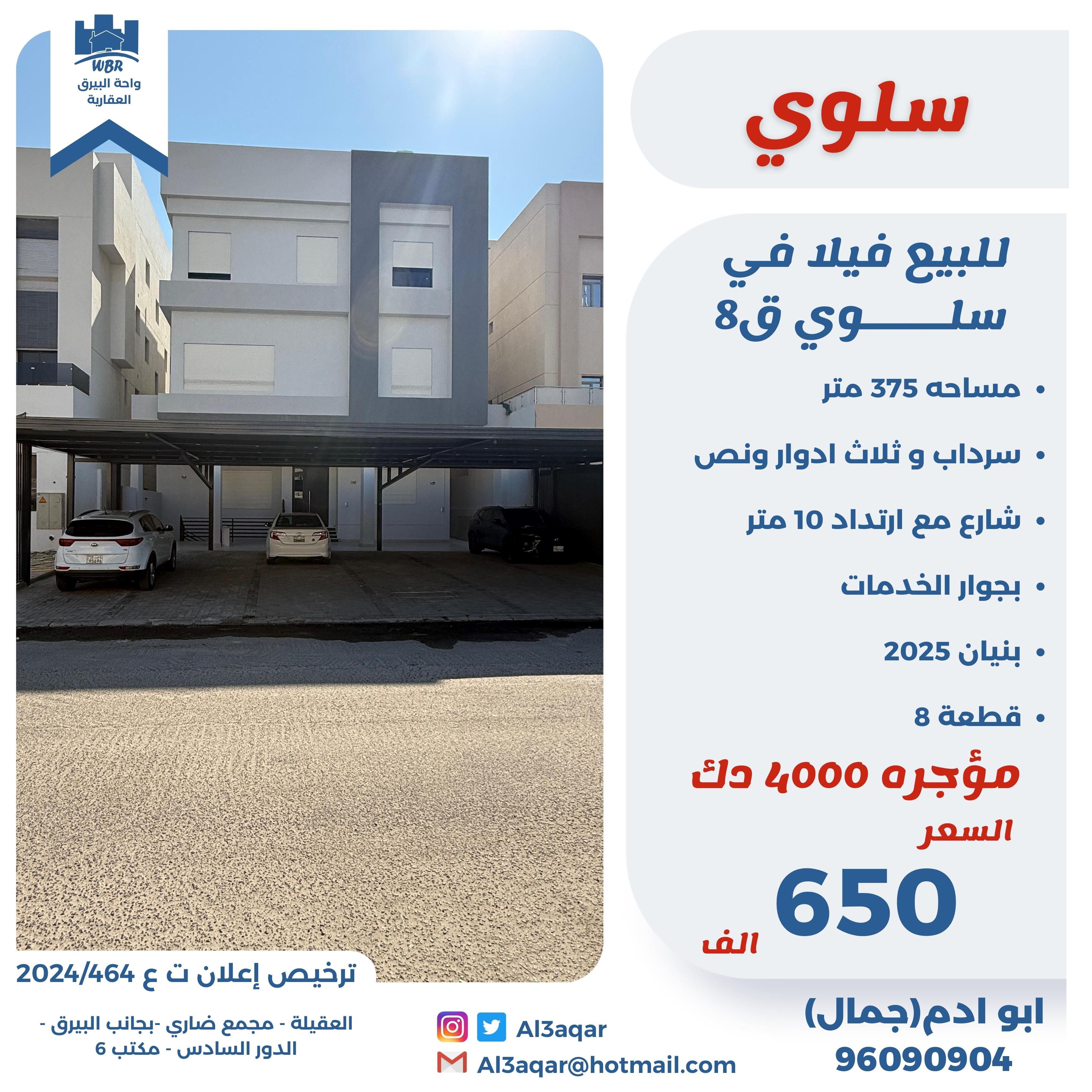 للبيع فيلا فى سلوي قطعة 8 Share ملخص للبيع فيلا فى سلوي قطعة 8 ، تتكون من سرداب و ثلاث أدوار ونص ، تقع على شارع مع ارتداد 10 متر ، مؤجره 4000 دك بجوار الخدمات بنيان 2025 ، مساحتها 375 متر مربع ، السعر 650 ألف د.ك . التفاصيل حالة: للبيع Page Views الأماكن القريبة من جوجل خصائص ذات صلة للبيع تجربة عنصر للبيع abdulrahman منذ أسبوعين للبيع د.ك111111 شقة تجربة عقار جديد خليل بوست أسرة: 666666 الحمامات: 666666 admin منذ 3 أسابيع Close