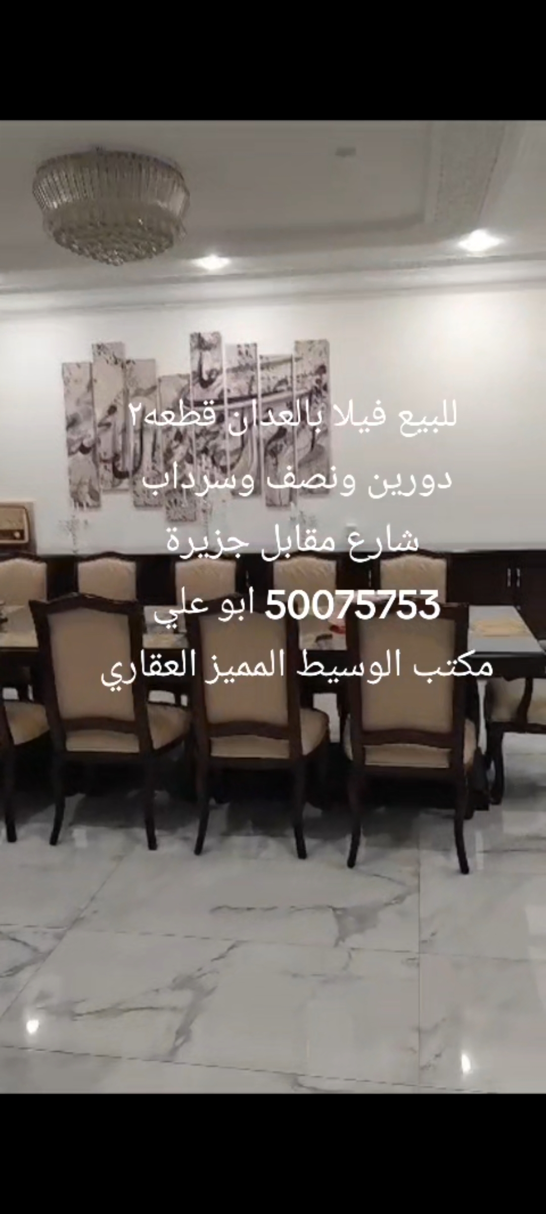 للبيع فيلا فى منطقة العدان Share ملخص للبيع فيلا فى العدان ، تتكون من دورين ونصف وسرداب ، تقع على شارع واحد مقابل الجزيرة ، يوجد 8 سيارات وثيقه حرة 440 ألف د.ك بيع ، مساحته 400 متر مربع ، وثيقه حرة . التفاصيل حالة: للبيع Page Views الأماكن القريبة من جوجل خصائص ذات صلة للبيع تجربة عنصر للبيع abdulrahman منذ أسبوعين للبيع د.ك111111 شقة تجربة عقار جديد خليل بوست أسرة: 666666 الحمامات: 666666 admin منذ 3 أسابيع Close