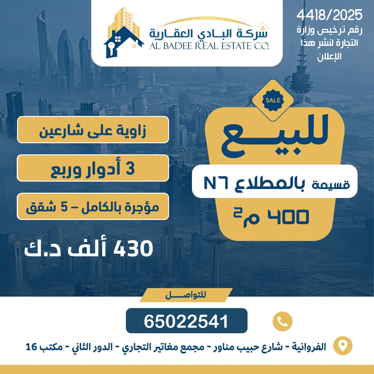 للتواصل 65022541 ترخيص 2025.4418